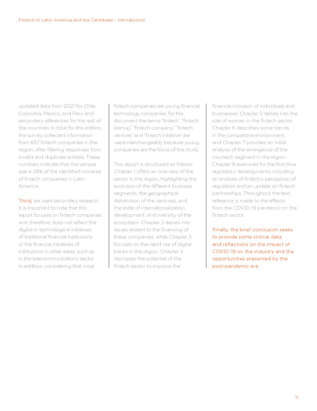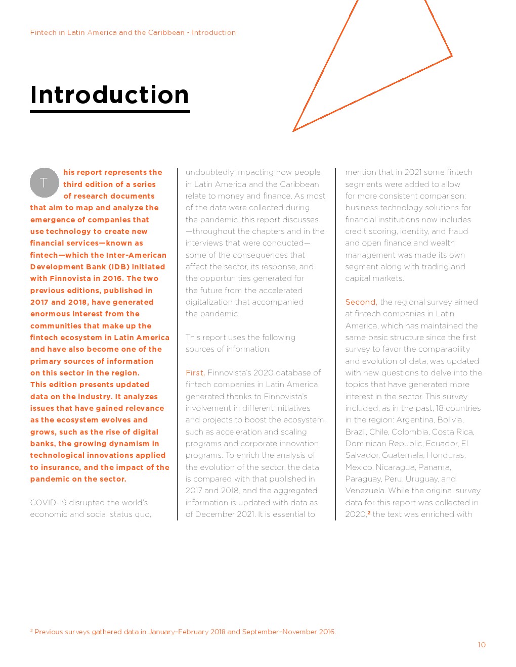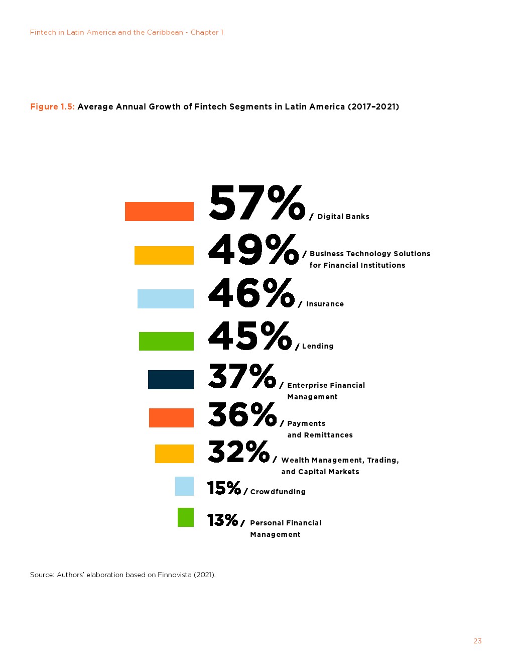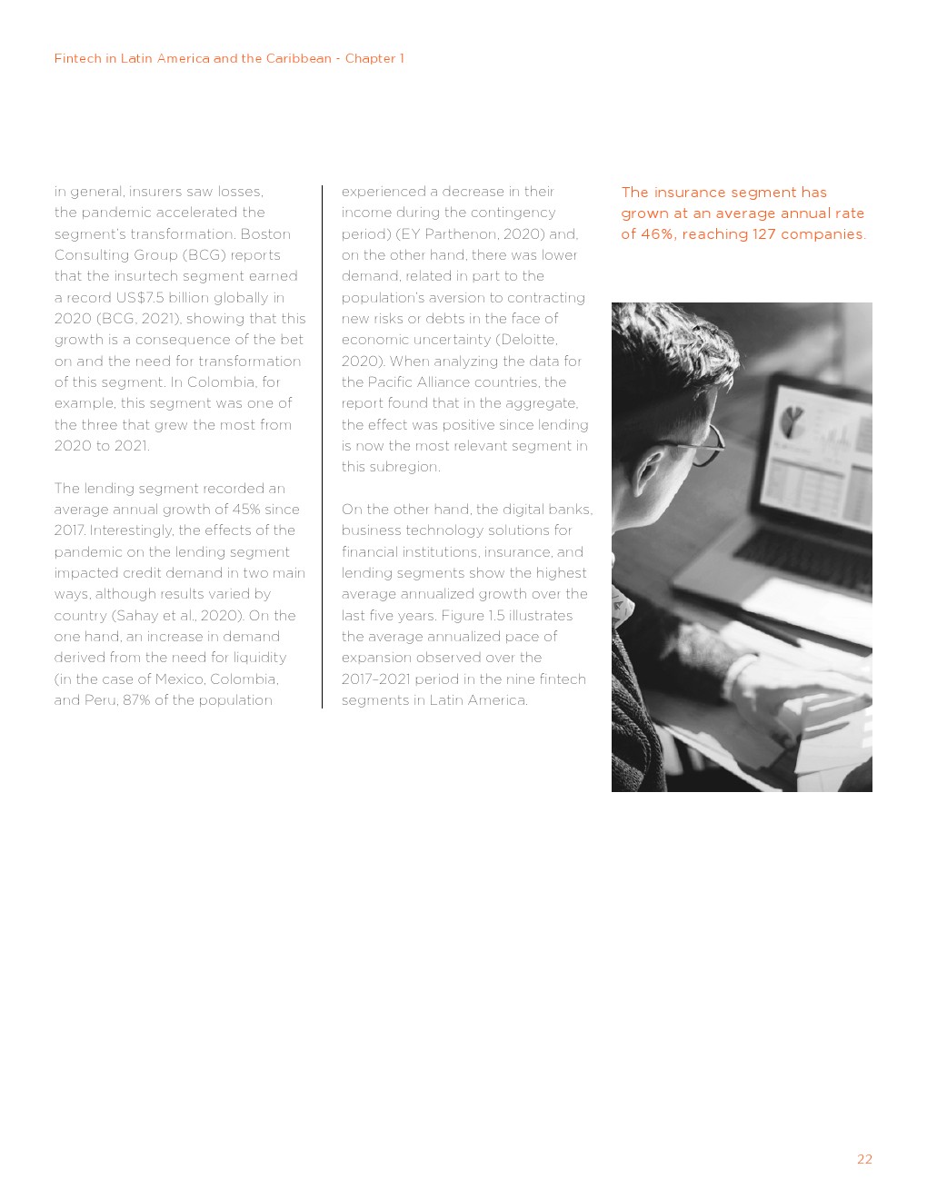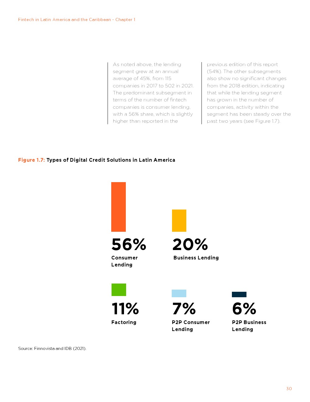 泛美开发银行(IDB)和 Finnovista 的这份报告强调了新冠大流行提高了该地区居民数字化程度,并最终有利于数字支付等商业模式的普及。此外,竞争分析显示,与传统金融体系合作的区域趋势正在加强。报告还展示了金融科技平台如何成为金融包容性的强大工具,为中小微企业(MSME)提供融资或促进越来越多的女性获得金融服务。事实上,该报告强调了女性获得该行业支持的程度。