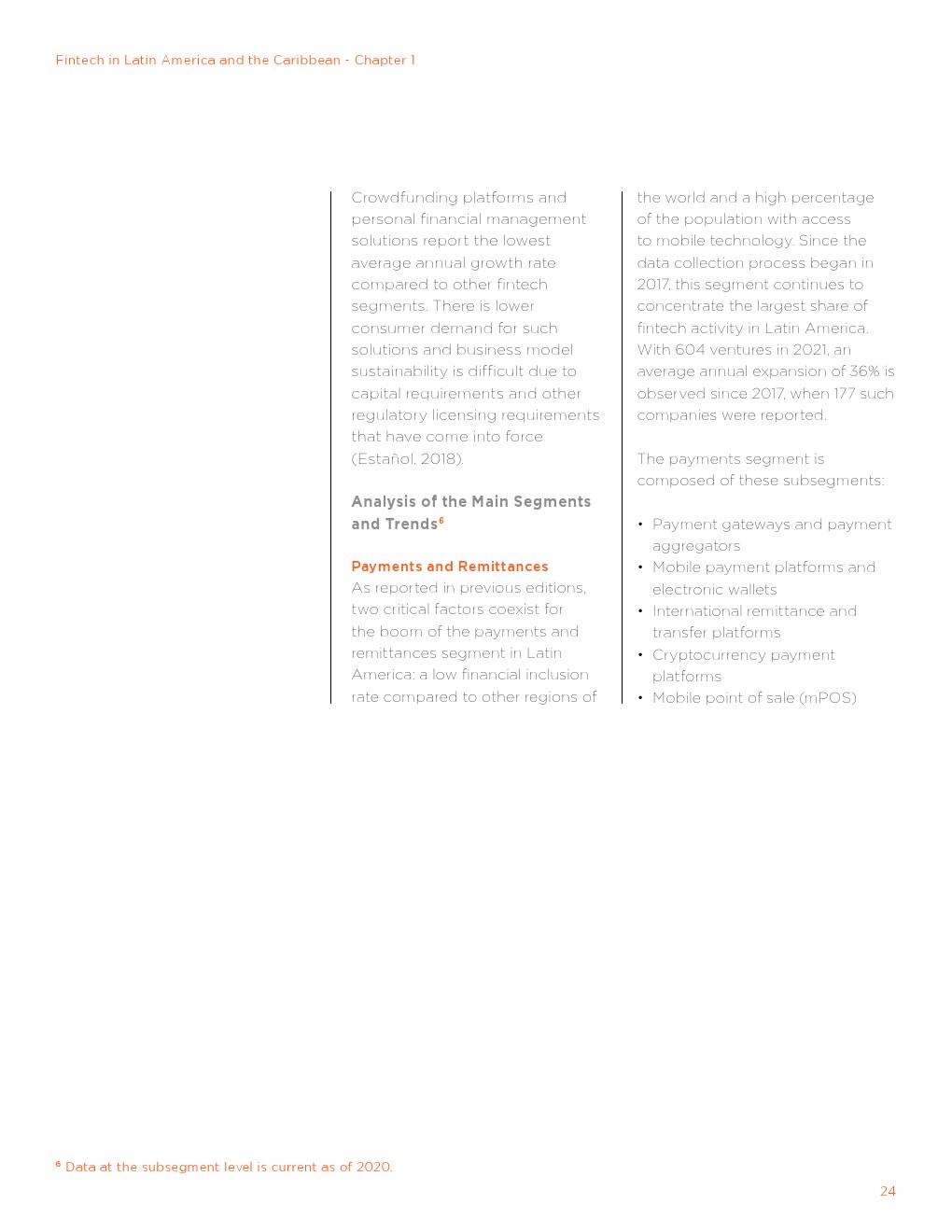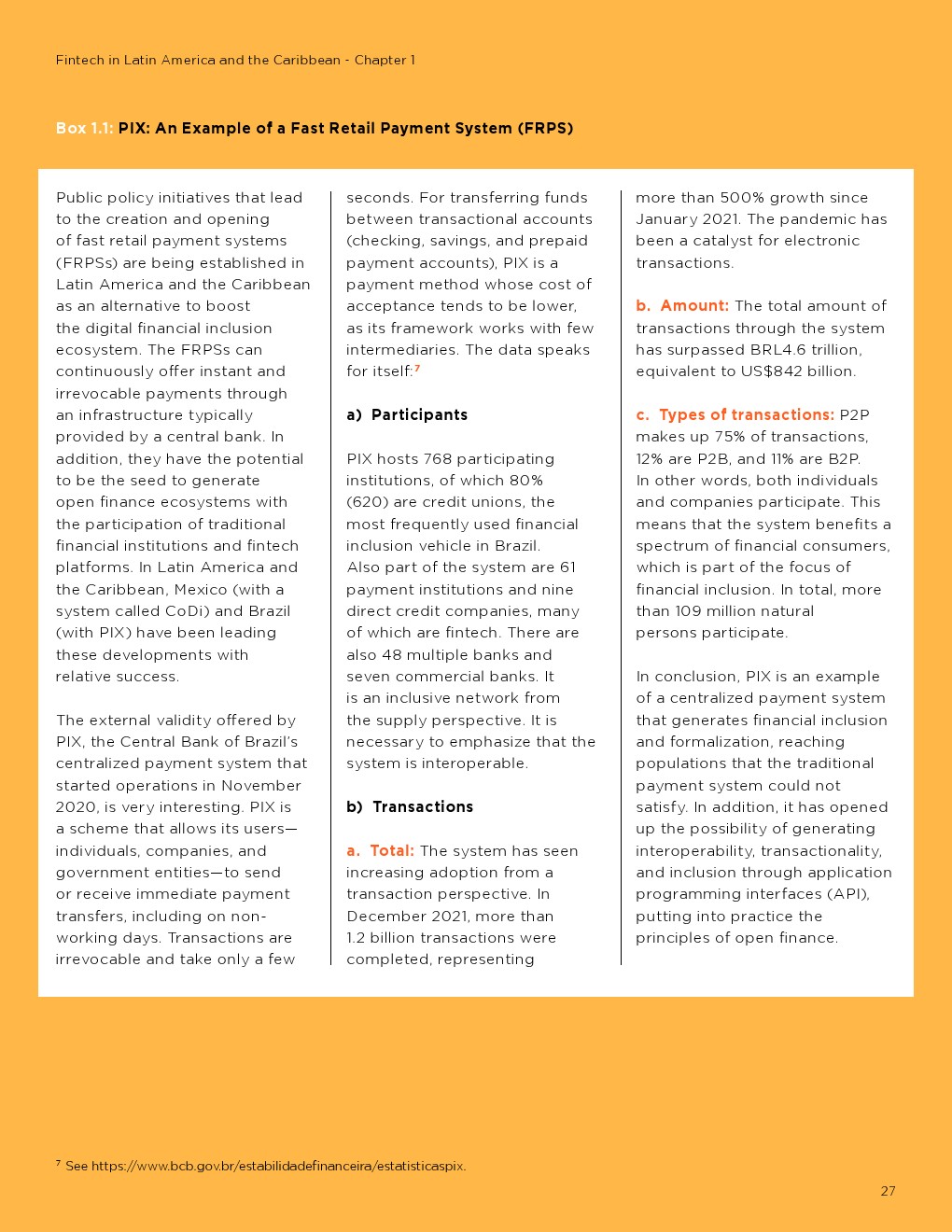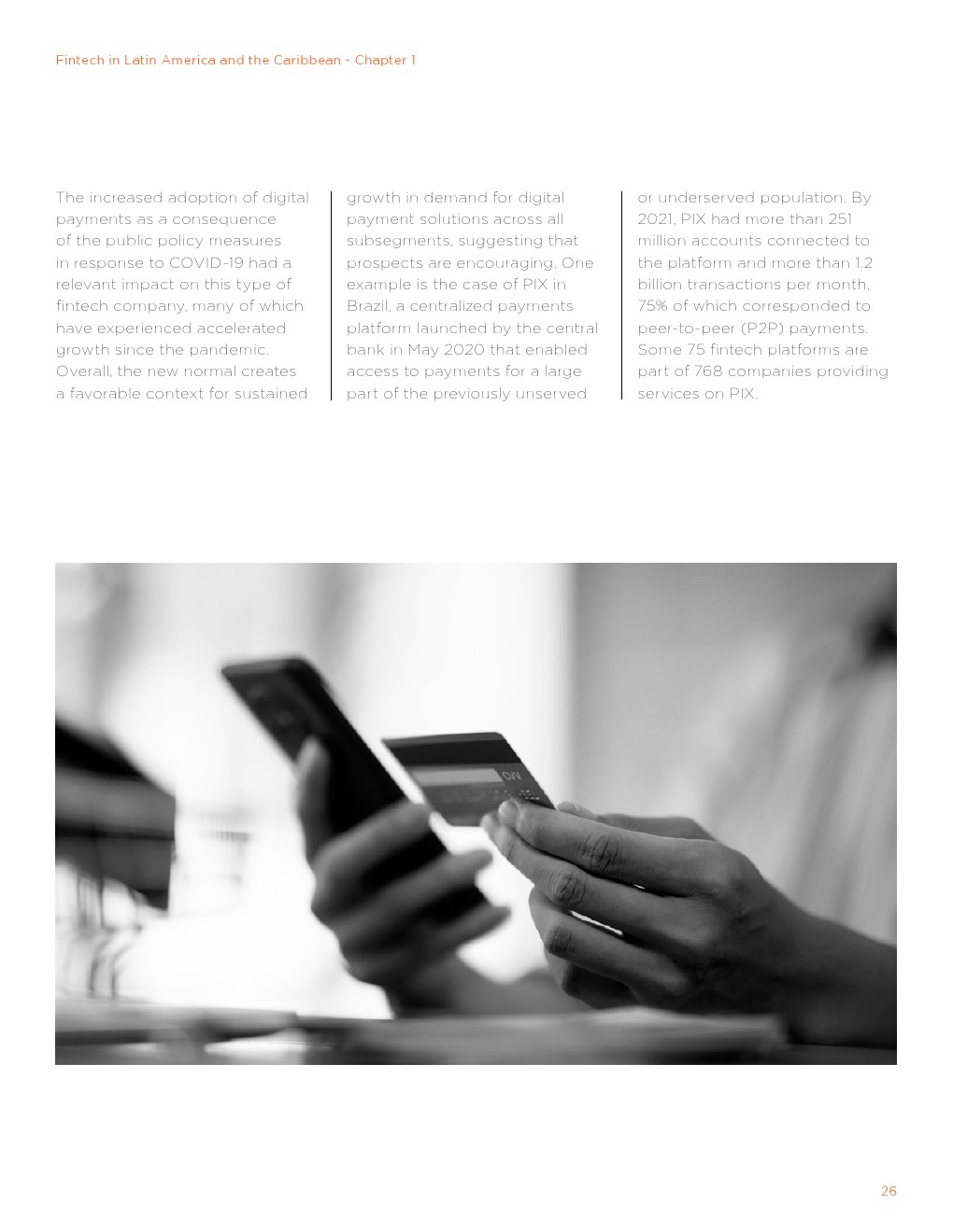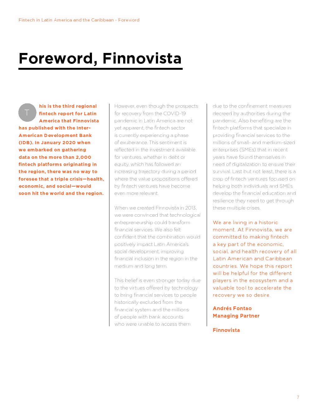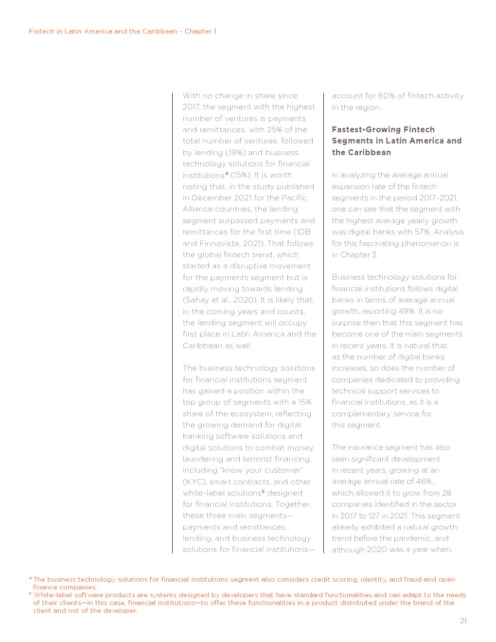 泛美开发银行(IDB)和 Finnovista 的这份报告强调了新冠大流行提高了该地区居民数字化程度,并最终有利于数字支付等商业模式的普及。此外,竞争分析显示,与传统金融体系合作的区域趋势正在加强。报告还展示了金融科技平台如何成为金融包容性的强大工具,为中小微企业(MSME)提供融资或促进越来越多的女性获得金融服务。事实上,该报告强调了女性获得该行业支持的程度。