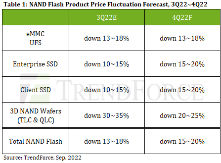 由于NAND供应持续数月过剩,固态硬盘的价格也一直在下降。TrendForce分析师在一份新报告中指出,这一趋势将在2022年4季度变得更加严重。预计NAND闪存价格会在下季度下调15-20%,从而带动SSD终端价格同步滑落。