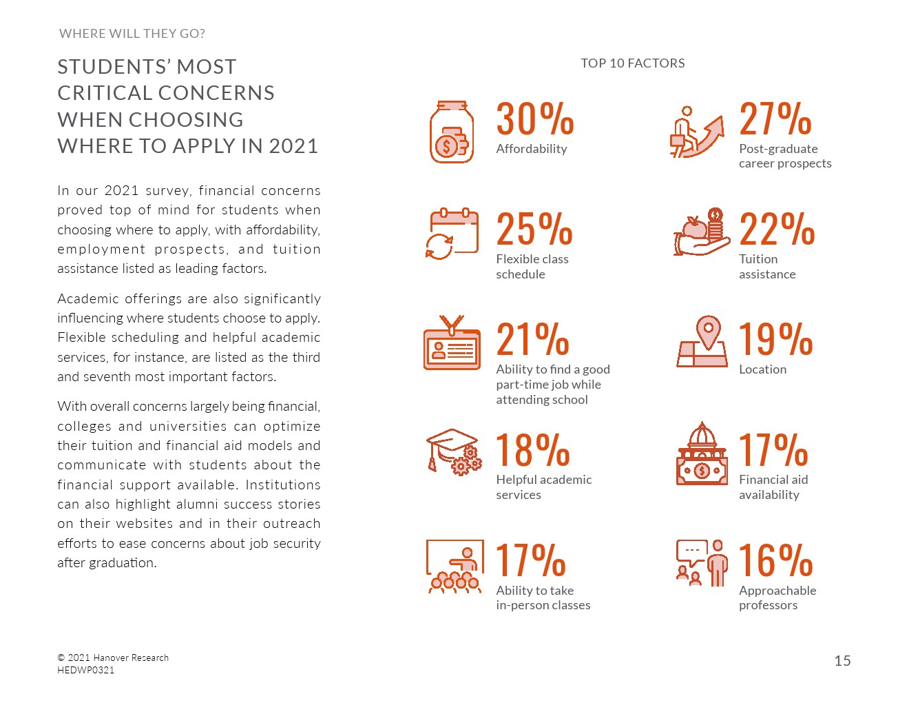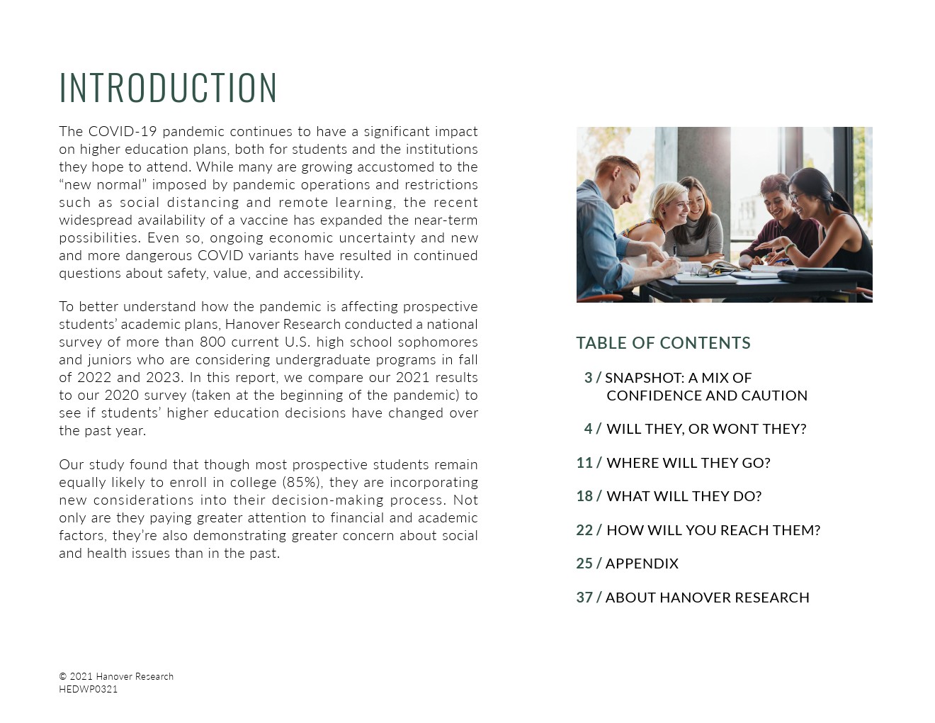 Hanover Research发布了报告“2021年准学生入学情况”,分析了财务状况和流行病对学生选择的影响。