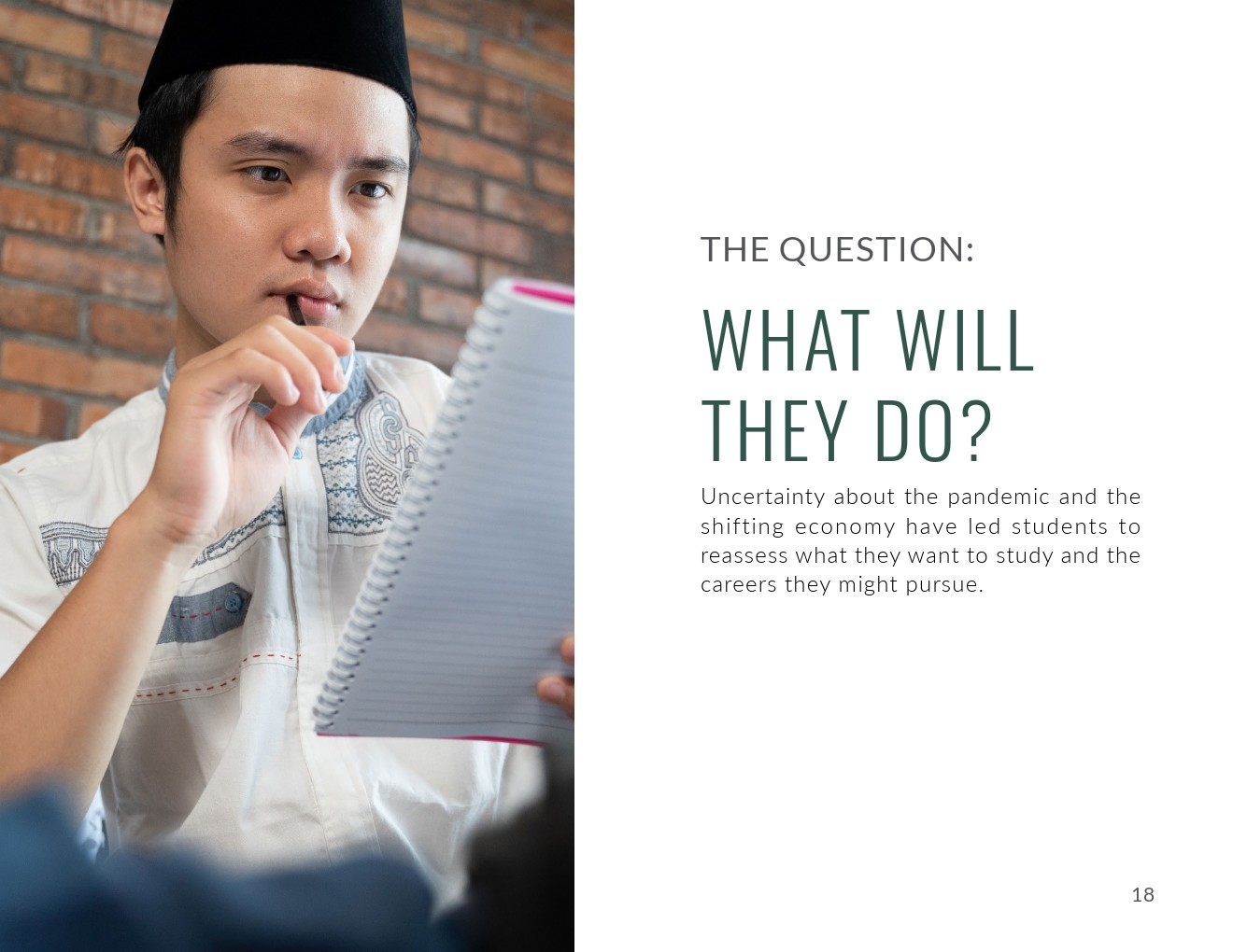 对大流行和不断变化的经济的不确定性导致学生重新评估他们想学习的内容和他们可能从事的职业。