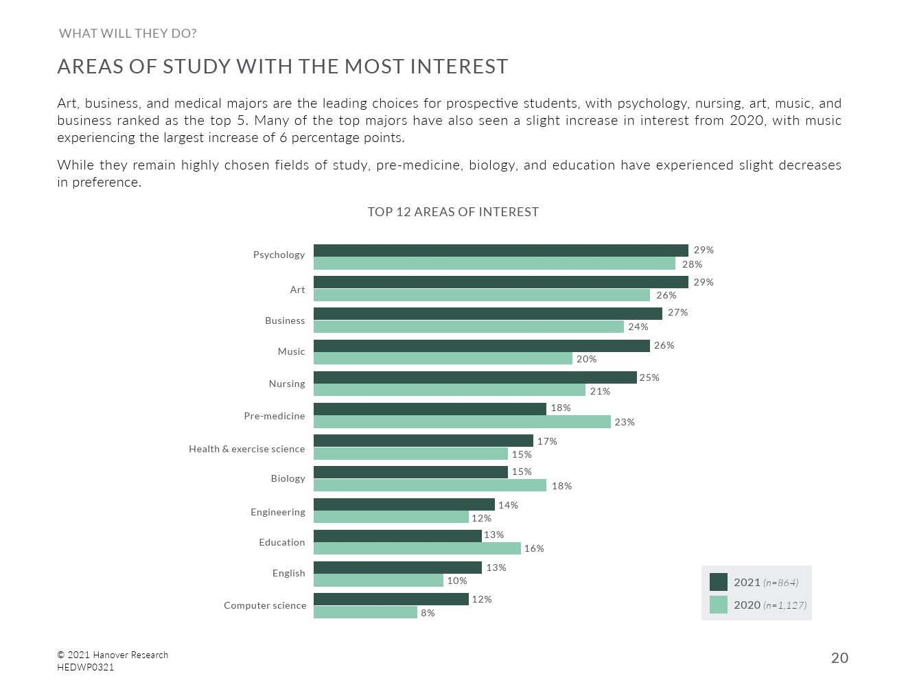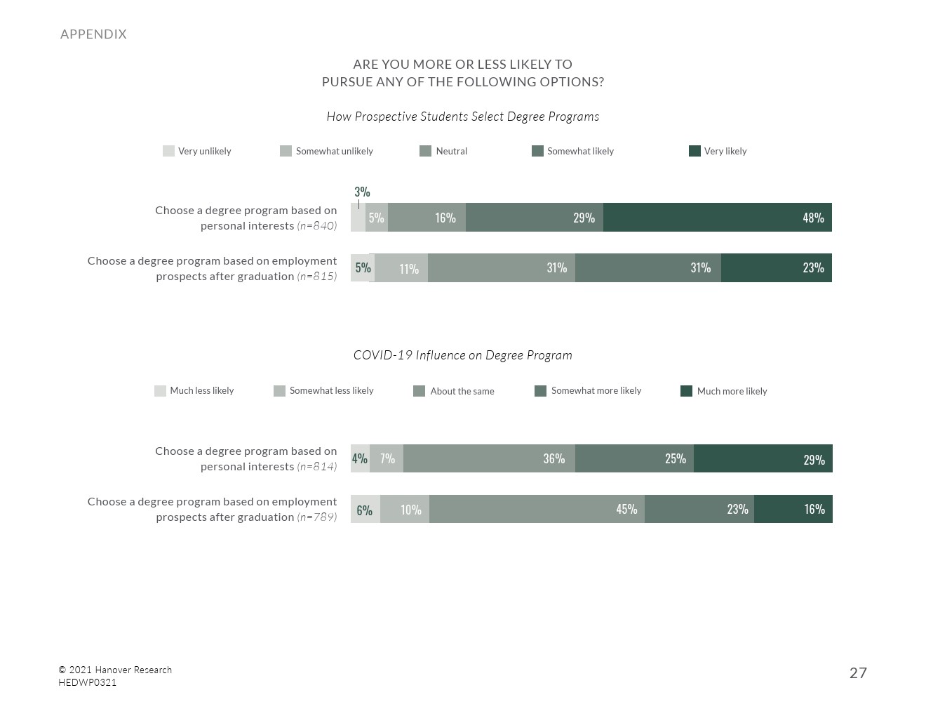 大多数准学生会根据个人兴趣选择学位课程,超过一半的受访者表示大流行影响了他们的决定。但是,就业前景在他们选择的研究领域中也发挥着重要作用。