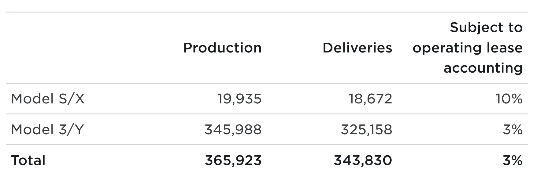 根据特斯拉官网公布的信息,本季度特斯拉 Model S 和 Model X 两款车型的交付量为 18672 辆,而 Model 3 和 Model Y 两款车型的交付量为 325158 辆。特斯拉在本季度共计生产 365923 辆,意味着还有大约 20000 辆新车在库存中。