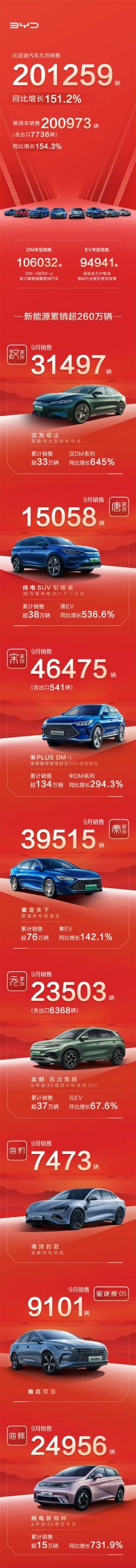 新能源市场的王者之争愈发激烈了。一边是比亚迪9月卖车超20万辆,不断给市场惊喜;一边是特斯拉销售下滑,推出的人形机器人也被吐槽,股价狂泻,这两位全球新能源汽车的巨头,来到了新赛点。“迪王”近日公布的产销数据显示,今年9月,比亚迪月度销量首次突破20万辆,达到201259辆,同比增长151.2%。其中新能源乘用车销量200973辆,同比增长187%。