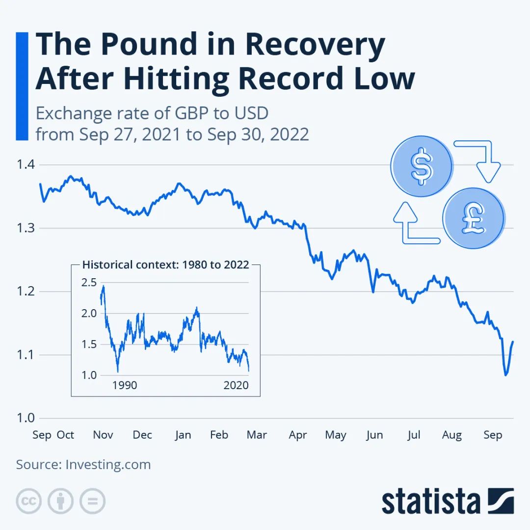 英镑兑美元汇率大幅下跌,上周一(9月26日)创下历史新低,原因是外汇市场对英国50年来最大的减税措施做出了反应。新总理夸西·科沃滕(Kwasi Kwarteng)上周晚些时候宣布了这一举措,同时还公布了增加政府借贷和支出的计划。