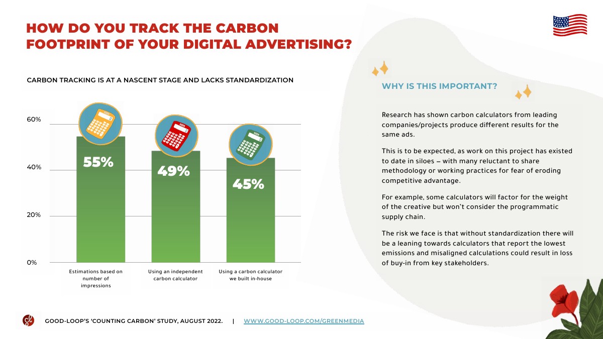 61%的美国营销人员目前正在跟踪其数字营销活动的碳成本。但是,56%的营销人员仍然依赖于估计数字。此外,还缺乏标准化,广泛使用独立和内部解决方案。
