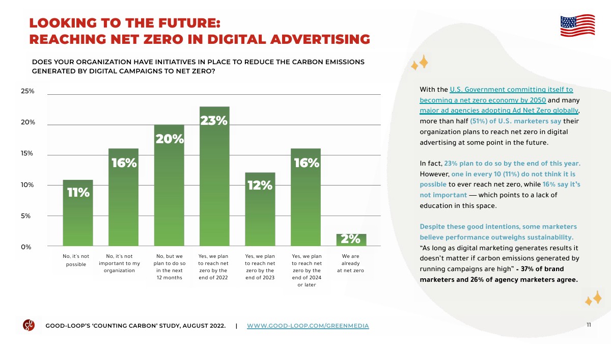 51%的受访者表示,他们的企业计划在某个时候实现数字广告的净零碳排放,但只有24%的人设定了目标,只有2%表示他们已经实现了净零排放。