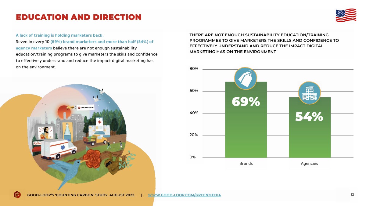 每10个品牌营销人员中就有7个(69%)和超过一半(54%)的代理营销人员认为没有足够的可持续发展教育/培训计划。