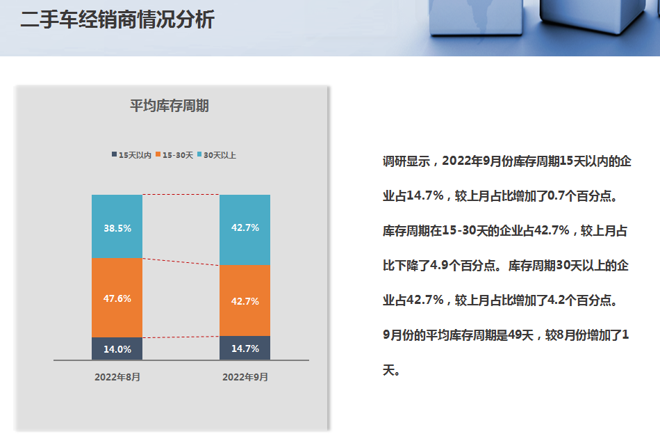 2022 年 9 月,5 年以内车龄的较新车数据较上月降低了 6 个百分点,5 年以上的 “老旧车” 提升了 6 个百分点。