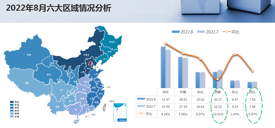 2022 年 9 月,新增贵州区域数据上传,上海数据开始回暖,四川、江西区域降低明显,其他区域基本保持平稳。