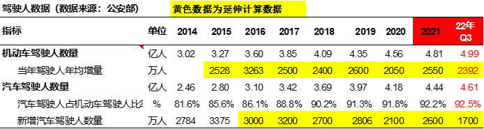 汽车驾驶员的数量按照两年平均是处于2300万的规模,今年预期仍是2300万左右,处于历年相对低位的水平,目前汽车驾驶员人数的增量,对车市增量的贡献度总体来看是不大的。