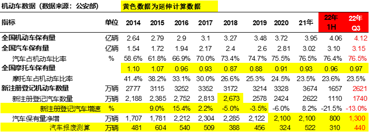 2022年1-9月汽车报废量净增测算为440万辆,总体来看增长相对较平稳,这也是受到疫情的严重影响,而3季度汽车报废测算达到130万辆的规模,实际上总体来看是相对较大的。未来来看,整个车市报废更新升级应该是重要的增长动力。