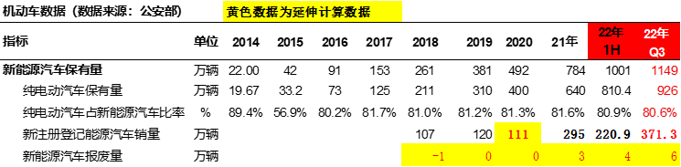 截至9月底,全国新能源汽车保有量达1149万辆,占汽车保有量的3.65%。其中,纯电动汽车保有量926万辆,占新能源汽车总量的80.6%。2022年前三季度,全国新注册登记新能源汽车371.3万辆,同比增加184.2万辆,增长98.48%,占汽车新注册登记量的21.34%。