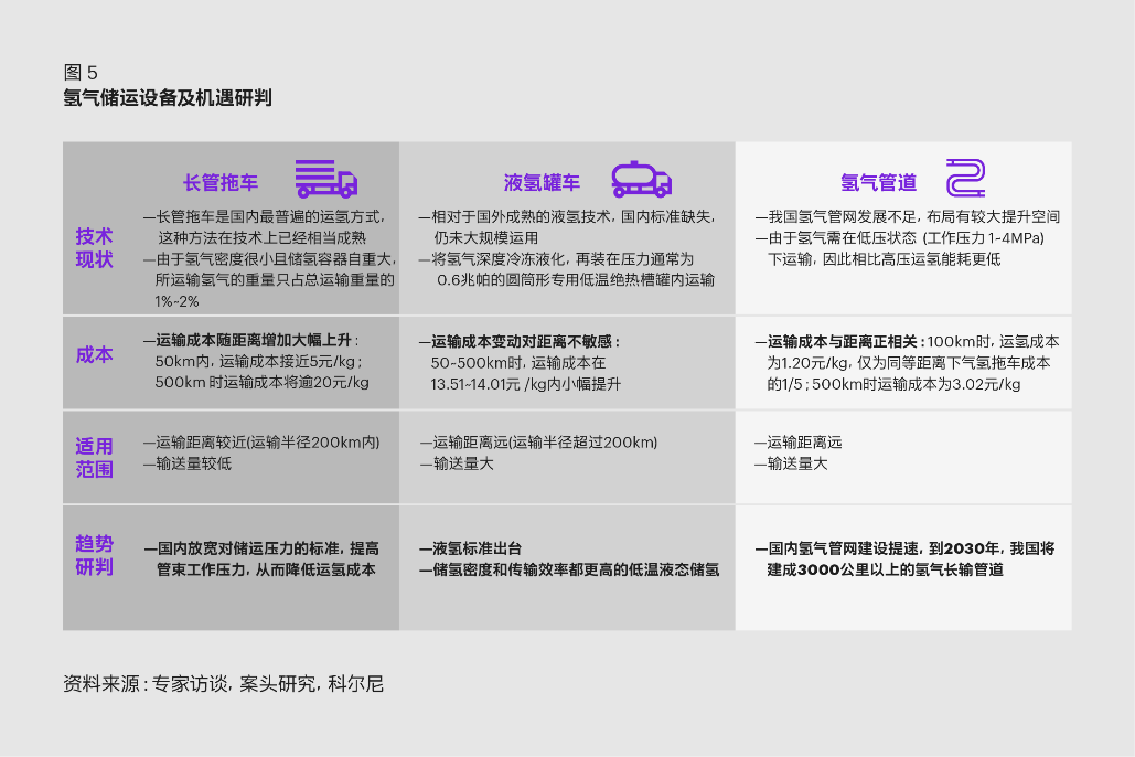 目前,高压气态储氢的技术相对成熟,在成本方面具备优势,是中国现阶段主要的氢气储运方式。科尔尼认为,高压气态储运在中短期内仍将是储氢的主流方案,而未来低温液态氢储运有望逐步商业化。