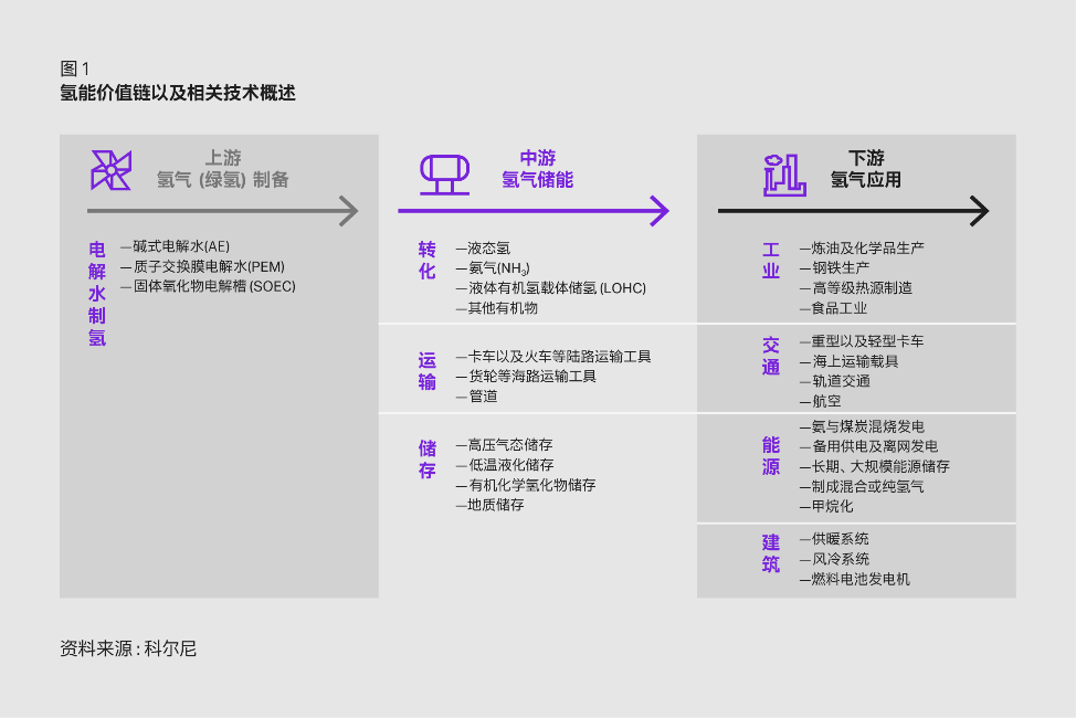 从目前来看,科尔尼认为,中国氢能产业链已趋于完善。目前,中国已初步掌握氢能制备、储运、加氢、燃料电池和系统集成等主要技术和生产工艺,在部分区域实现燃料电池汽车小规模示范应用(如图 1)。