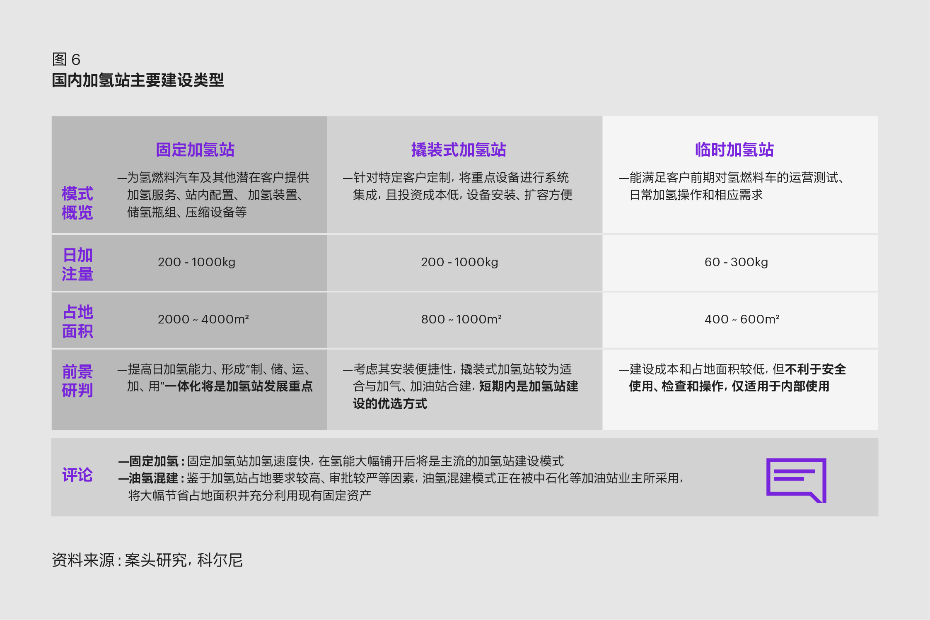 因地制宜地选取合适的加氢站类型为初期建设中的重中之重。从目前来看,固定加氢站的加氢速度快,在氢能大幅铺开后将是主流的加氢站建设模式。鉴于加氢站占地要求较高、审批较严等因素,油氢混建模式正在被中石化等加油站业主所采用。这将大幅节省占地面积并充分利用现有固定资产(如图 6)。