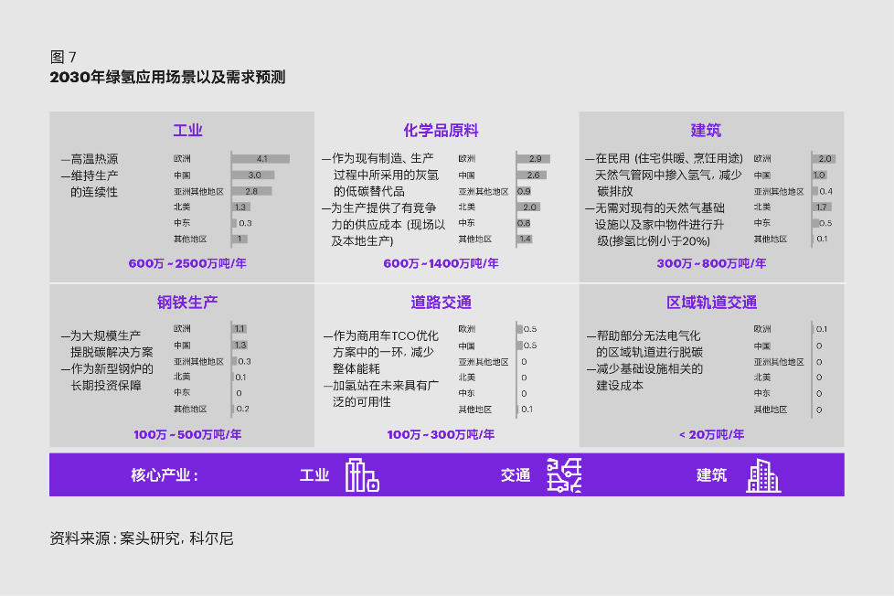 综上,科尔尼建议,未来十年内重点关注绿氢制合成氨、绿氢制甲醇、商用燃料电池车、直接还原铁炼钢和高等级供热等 5 大细分领域,其它领域也有望在中长期迎来爆发式增长。