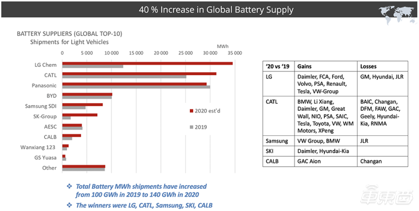 ▲2019年和2020年全球十大电动汽车电池生产商产能对比