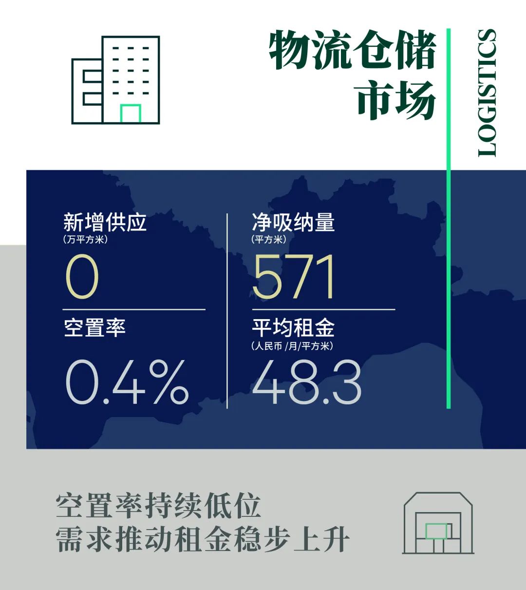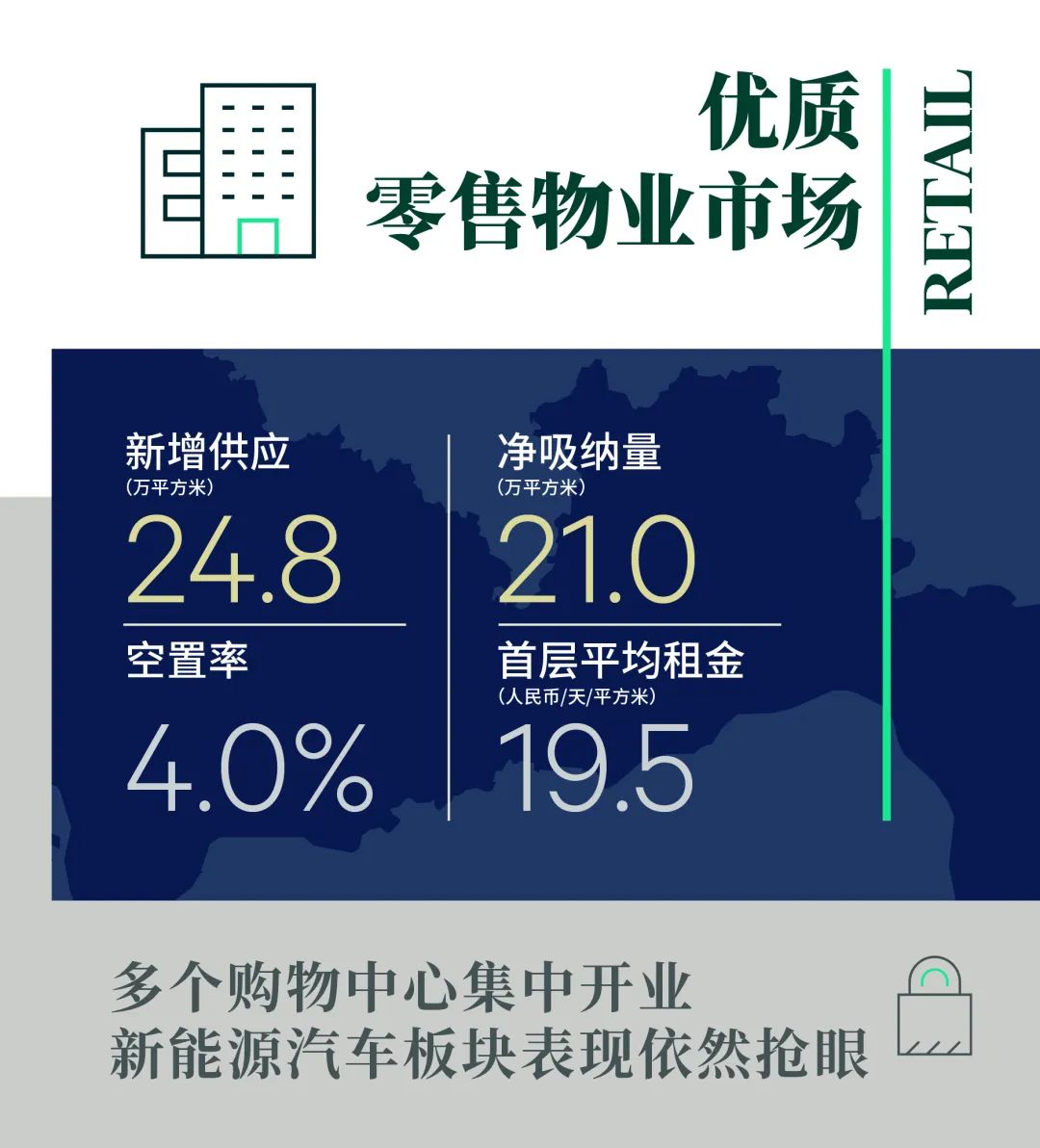受新项目带动,单季净吸纳量环比跃升至21万平方米,需求活跃度明显上升。与此同时,受个别新入市购物中心的影响,市场空置率环比微升至4.0%,但依然处于市场低位。