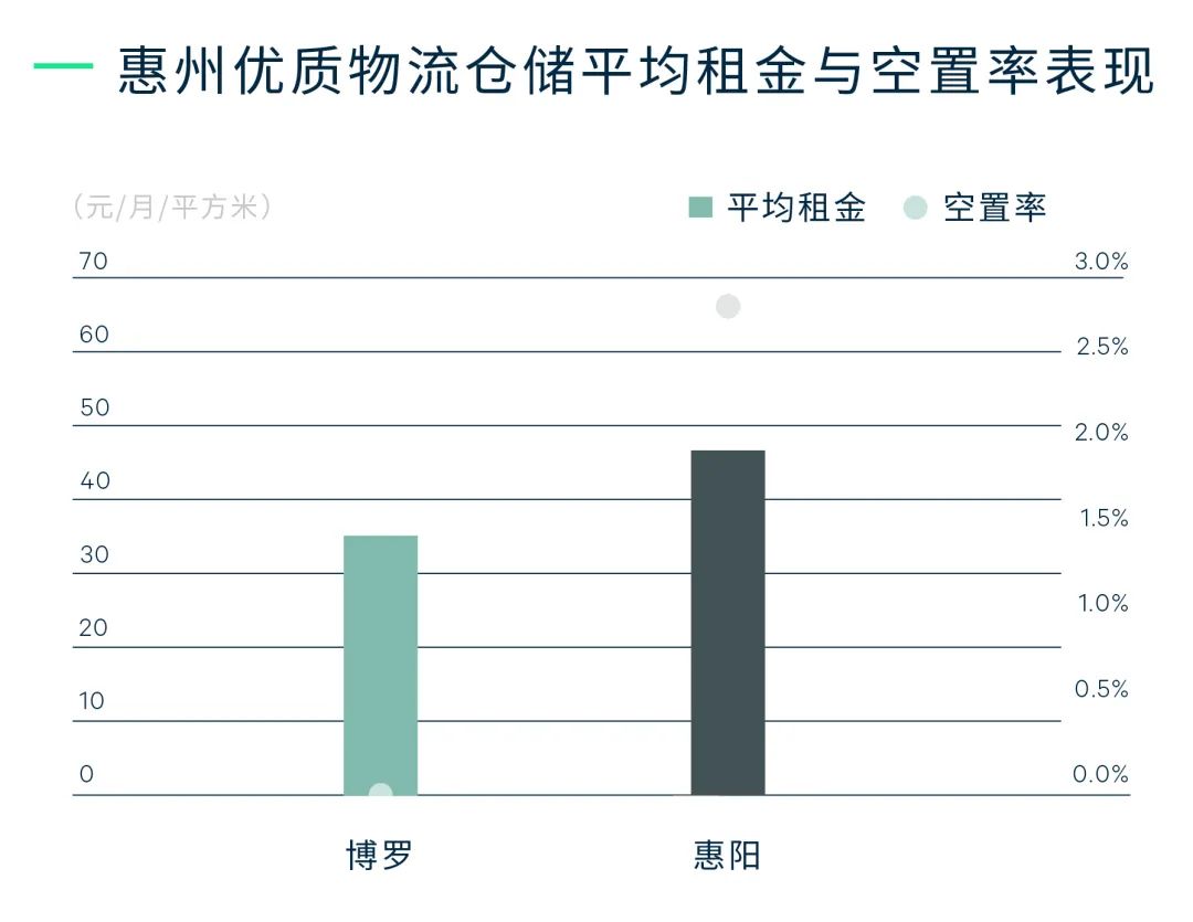 相较深圳和东莞,惠州优质物流仓储市场总供应量为104.6万平方米,总体规模较小。本季没有新增供应入市,位于惠阳区的个别优质物流项目的空置率进一步改善,单季共录得7,900平方米的净吸纳量,整体市场空置率下降至2.2%的较低水平,平均租金环比上涨1.5%至每月每平方米36.7元。季内的需求主要来自制造业,录得了一宗来自制造业上万平方米的租赁交易。未来六个月,预计将有超过40万平方米的新增供应入市,均分布在惠城区,预计整体市场的空置率将会上升,而租金在深圳外溢的需求带动下将实现继续增长。