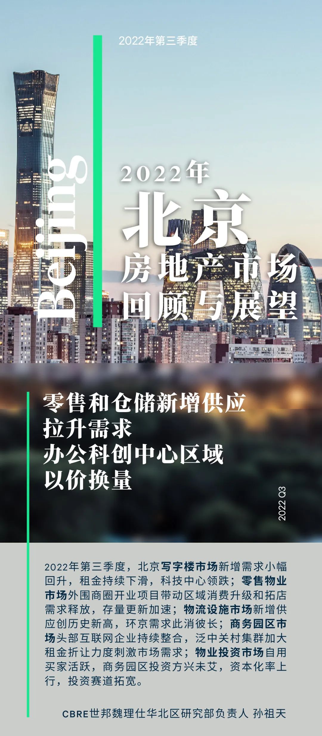 “本季度频见开发商抛售资产,以加速现金回流,数宗办公、商业和酒店交易与此前可比交易相比均有较大幅度的价格折让,反映该类商业地产资本化率已进入上行渠道,物业收购窗口期进一步打开。另一方面,在基础设施公募REITs的持续扩容下,产业园区、仓储物流和保障性租赁住房等板块进一步受到追捧,吸引更多投资者布局,也将为北京大宗交易开辟更广阔的赛道。”