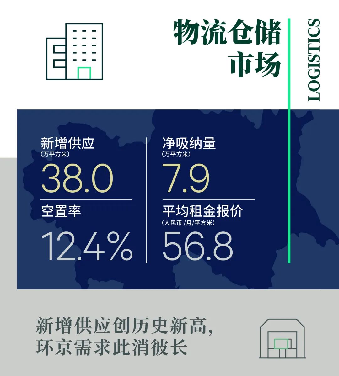 “未来六个月,北京物流设施市场预计仍将迎来约30万平方米的新增供应,有望推动更多租赁需求在非核心区域落地。同期廊坊和天津市场供应将继续放量。京津廊多个区域政府有土地规划及项目落地动作,除在建工程外,北京平谷、廊坊霸州及天津滨海新区等区域在本季度皆有新增仓储用地出让。未来环京项目的不断增加,将为市场回暖后的需求放量提供更多优质空间储备。”