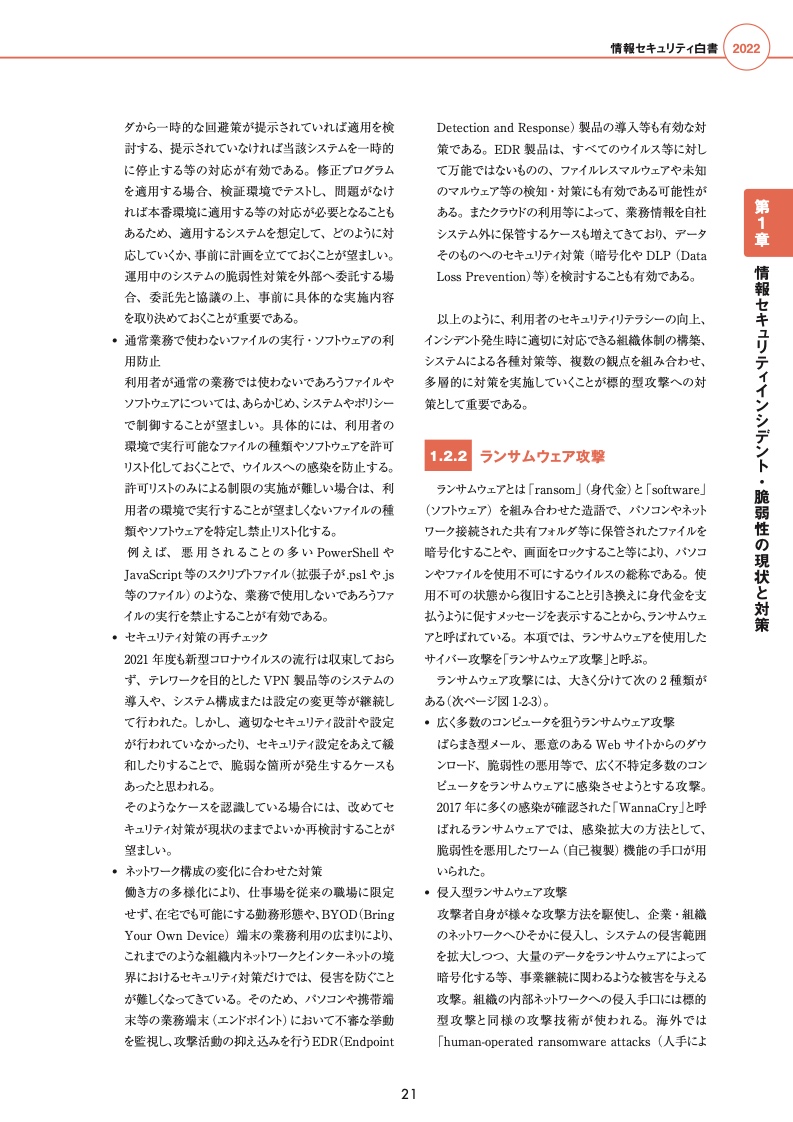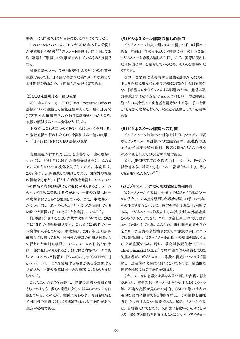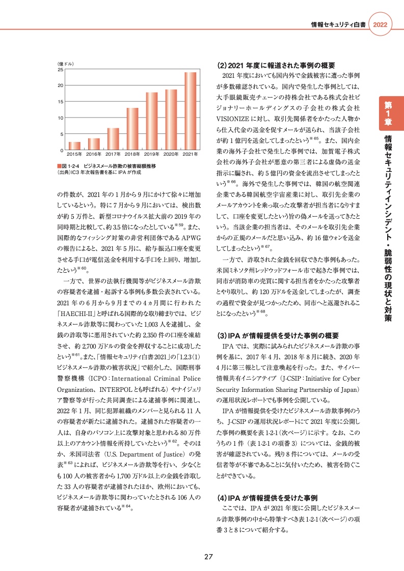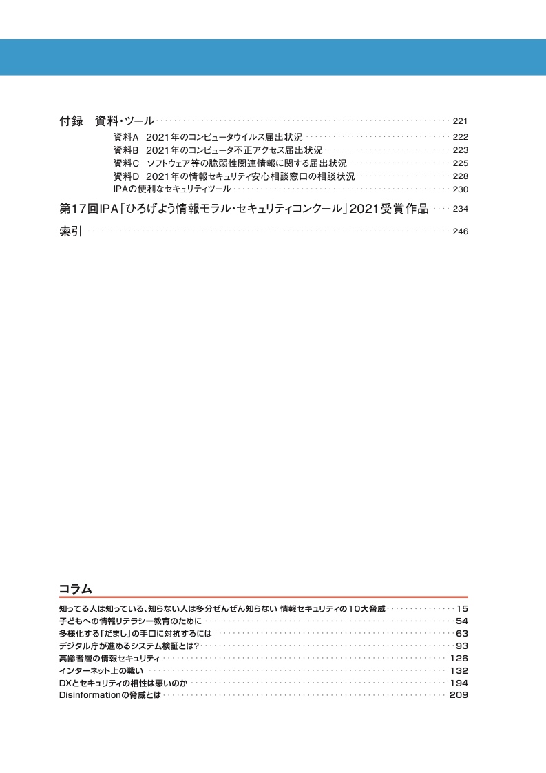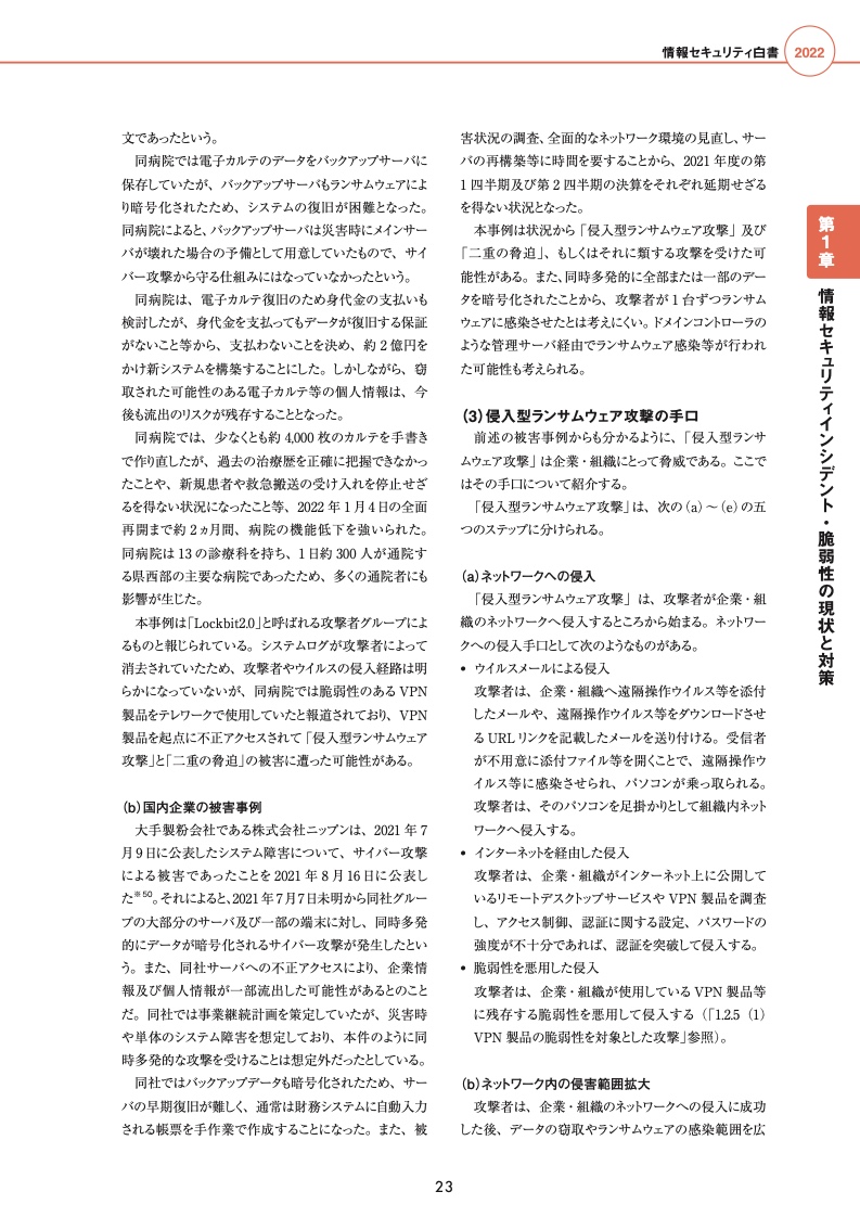 日本信息处理推进机构(IPA)发布了2022年版《信息安全白皮书》。IPA自2008年开始发布年度《信息安全白皮书》,内容包括与信息安全有关的日本国内外政策、威胁动向、发生事件情况、所受影响情况等。除了这些固定内容之外,IPA每年还会选择代表性事件,采用官方和民间的各种数据和资料并进行分析。