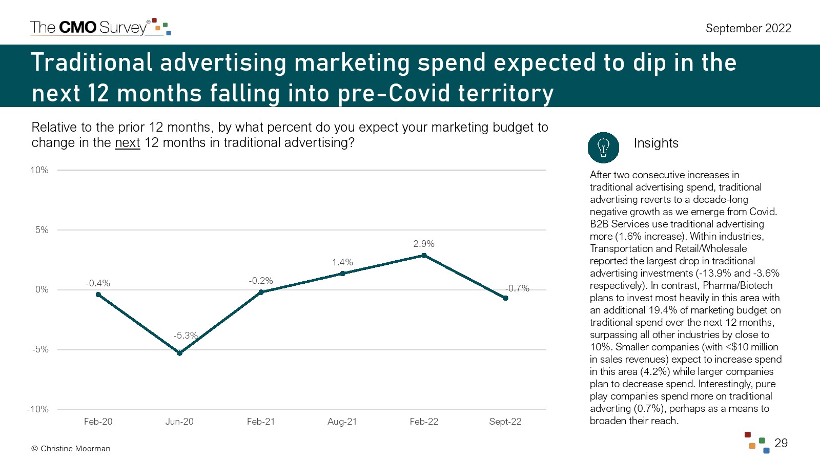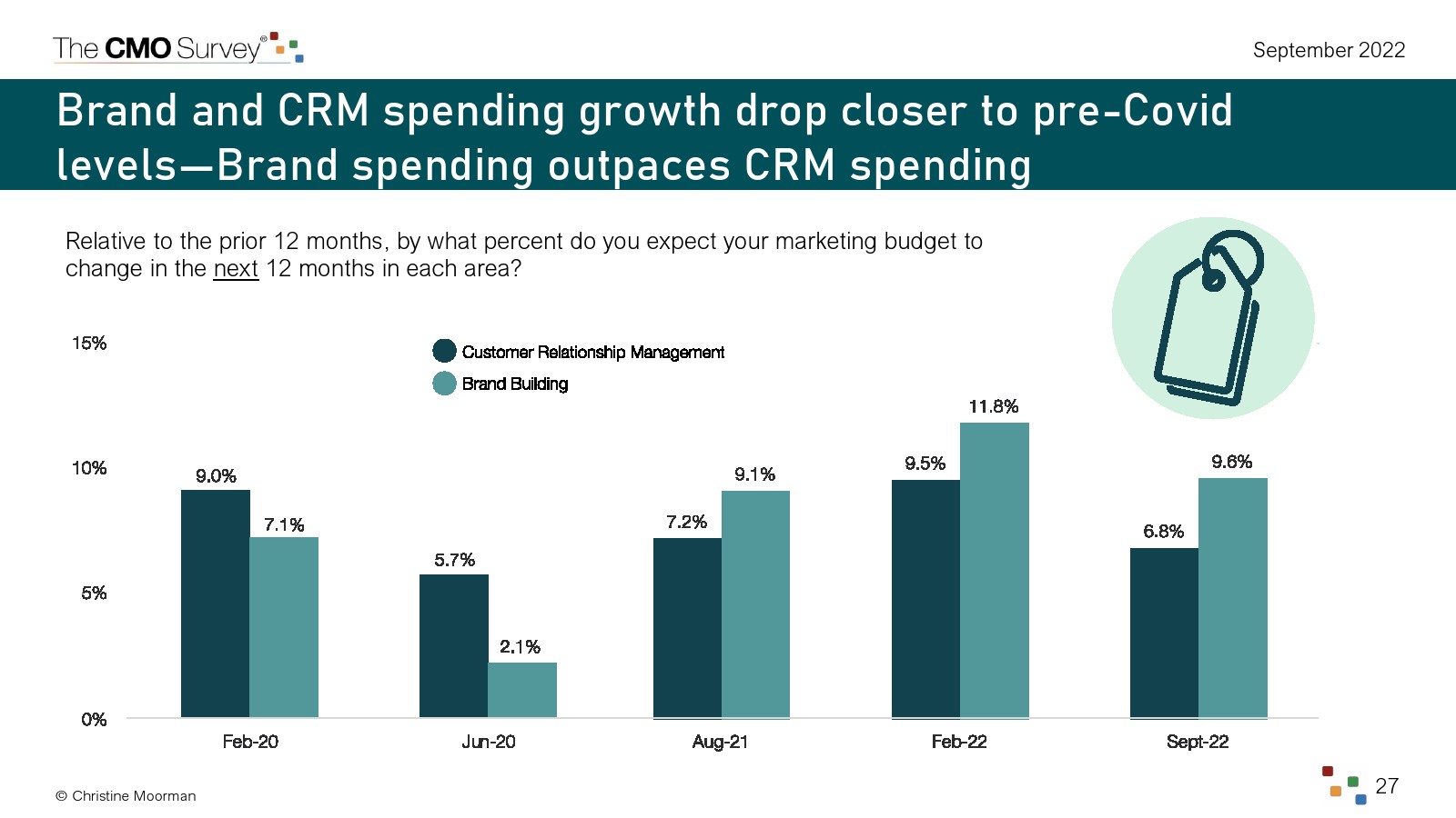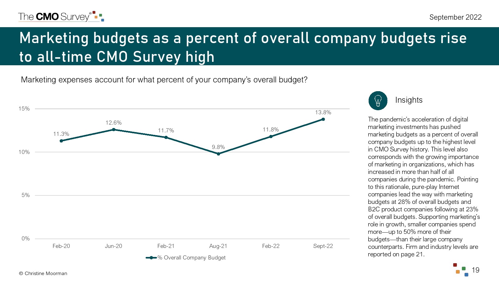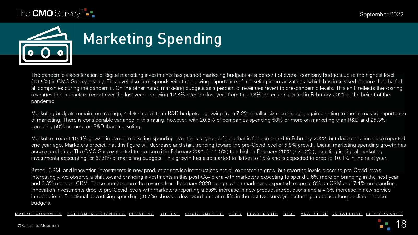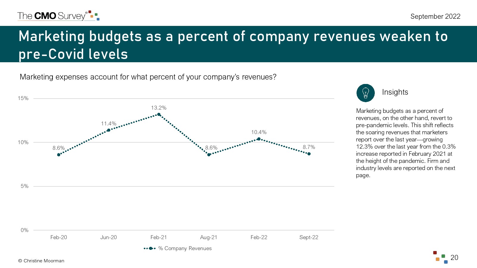 与此同时,分析预算呈上升趋势。根据最新调查发现,受访者估计他们将8.9%的预算分配给营销分析,而上一次调查(2020年2月)中这一比例为6.1%。