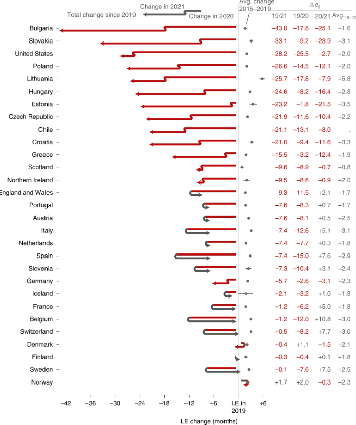 他补充说:“瑞典、瑞士、比利时和法国等国家设法将预期寿命恢复到大流行前的水平,因为它们设法保护了老人和年轻人。”