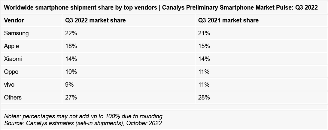 展望未来,Canalys分析师预测,进入2022年第四季度和2023年上半年,智能手机需求几乎没有改善的迹象,供应商将需要与他们的供应链伙伴一起调节产能和对前景的估算。