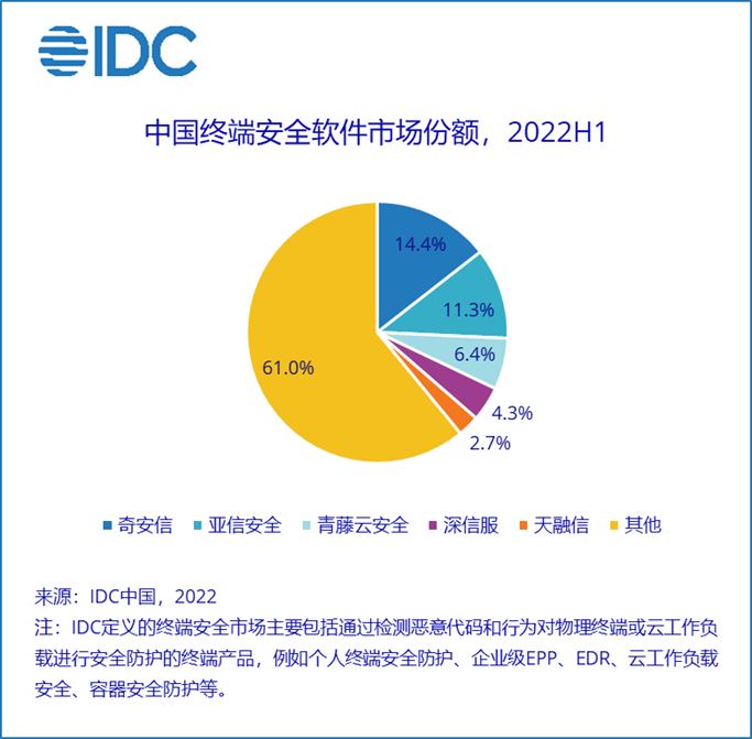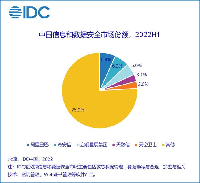 IDC《2022年上半年中国IT安全软件市场跟踪报告》显示,2022年上半年中国IT安全软件市场厂商整体收入为15.1亿美元(约合97.9亿元人民币),较2021年同比增长13.1%。