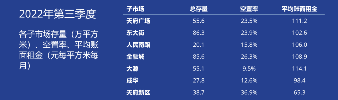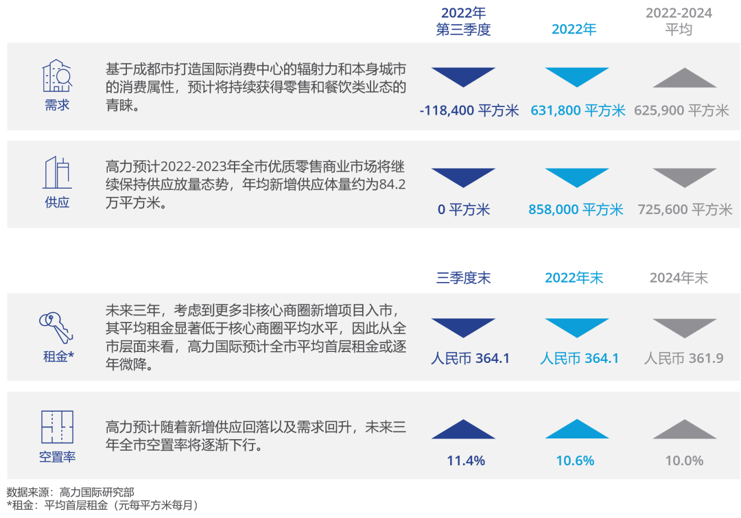 高力国际预计充沛的新增供应将持续至2023年,今明两年年均新增供应面积或至84.2万平方米;2023年全年新增供应或将达82.6万平方米。其中作为新兴商圈的天府新区,供应端将在今明两年发力,合计新增供应面积或超50万平方米。此后,预计2024年全市新增供应将显著回落。