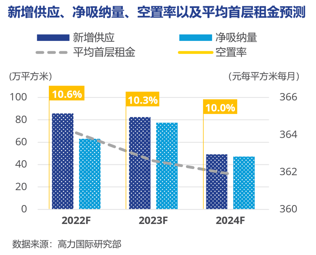 高力预计明年全市平均租金或将同比持平。一方面,考虑到2023年仍将有超30万平方米的新增供应入市,一定程度上平均租金将承压;另一方面,待入市项目中不乏有位于核心区域的高品质项目,或将支撑全市平均租金保持稳定。