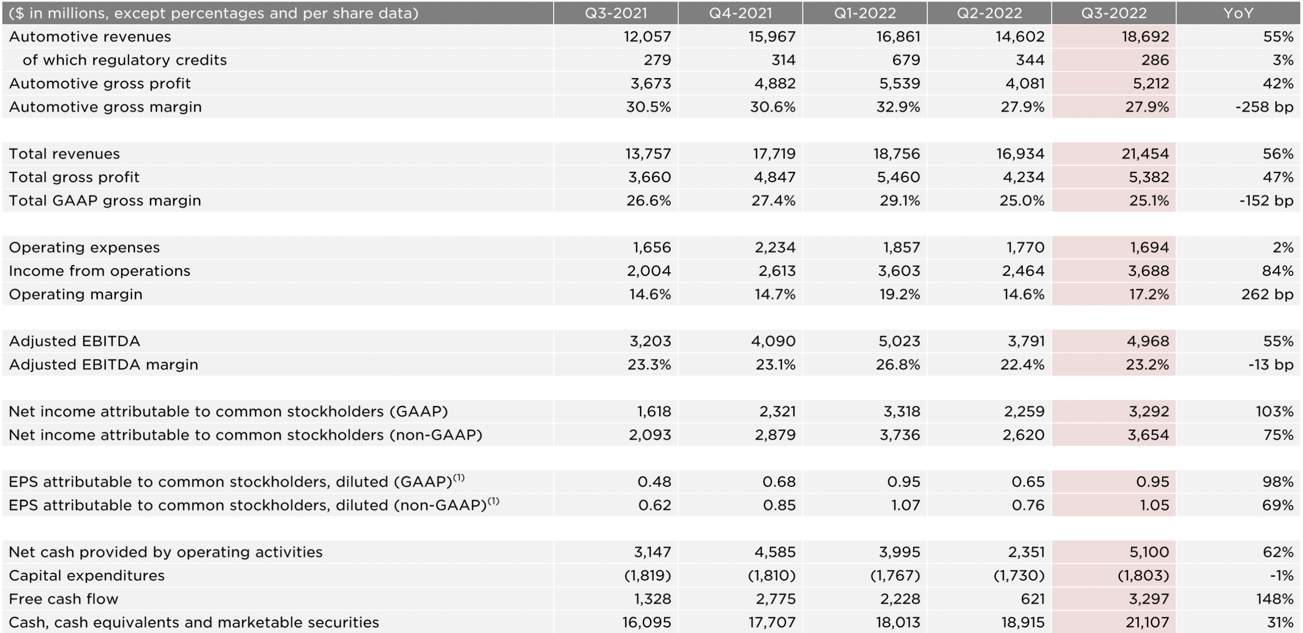 在截至9月30日的这一财季,特斯拉归属于普通股股东的净利润为32.92亿美元,与去年同期归属于普通股股东的净利润的16.18亿美元相比增长103%,而上一季度归属于普通股股东的净利润为22.59亿美元。特斯拉第三季度归属于普通股股东的每股收益为0.95美元,与去年同期归属于普通股股东的每股收益0.48美元相比增长98%,而上一季度归属于普通股股东的每股收益为0.65美元。