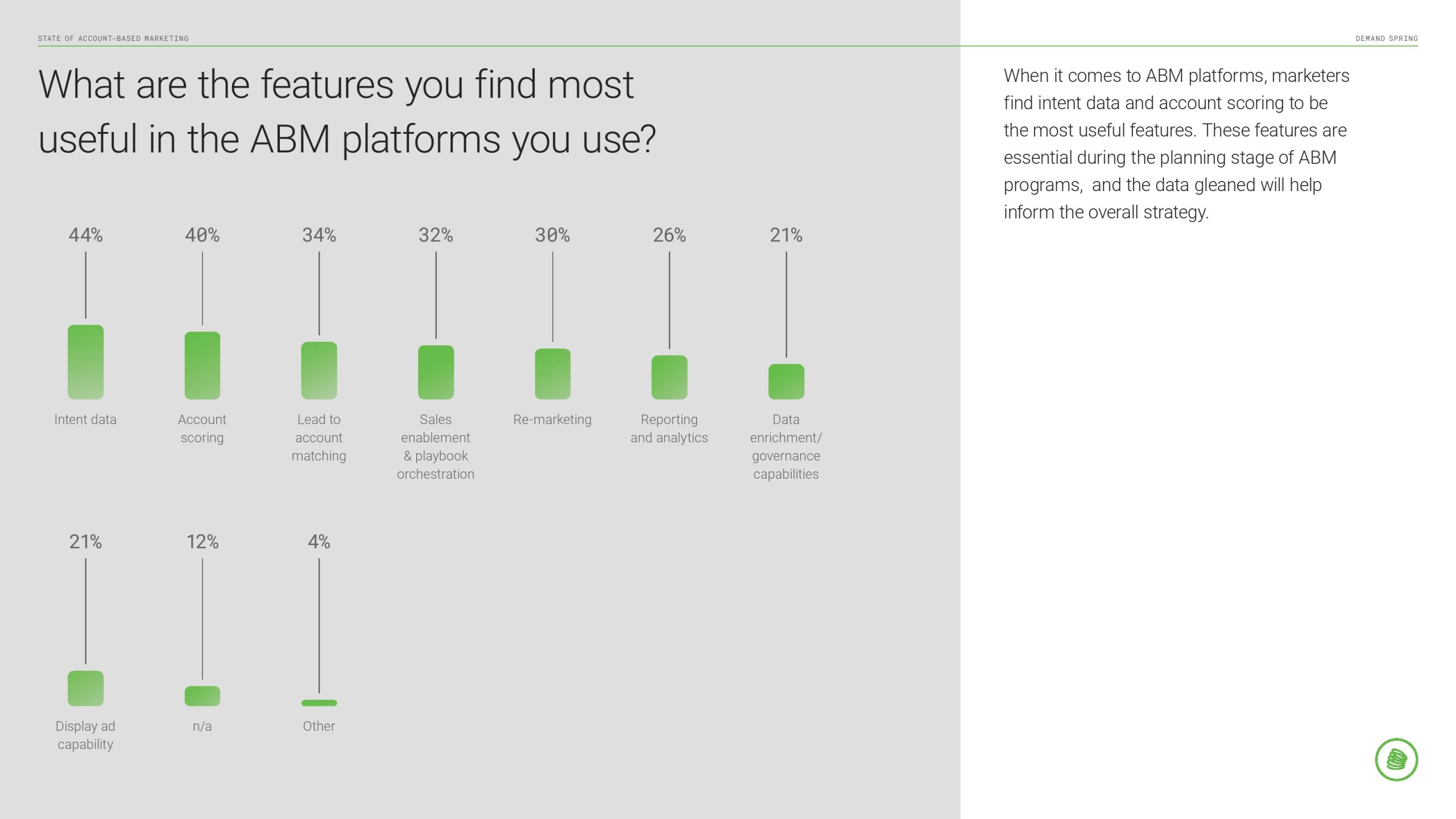 营销人员对他们使用的平台相对满意,并引用意向数据和账户评分作为他们在使用的平台中最有用的功能。