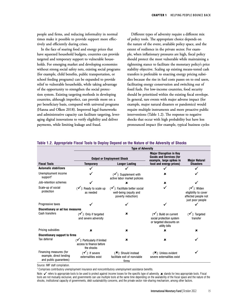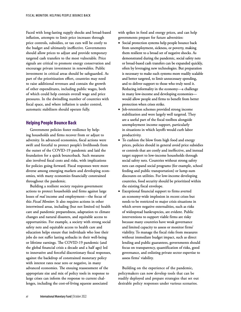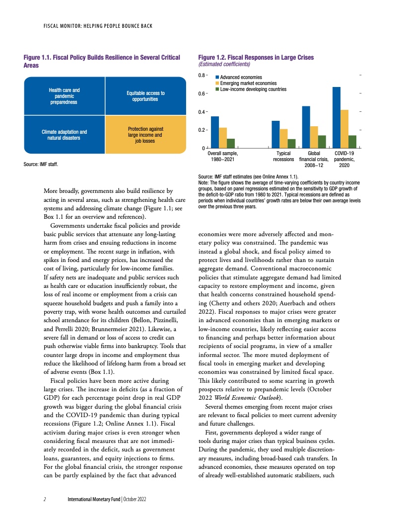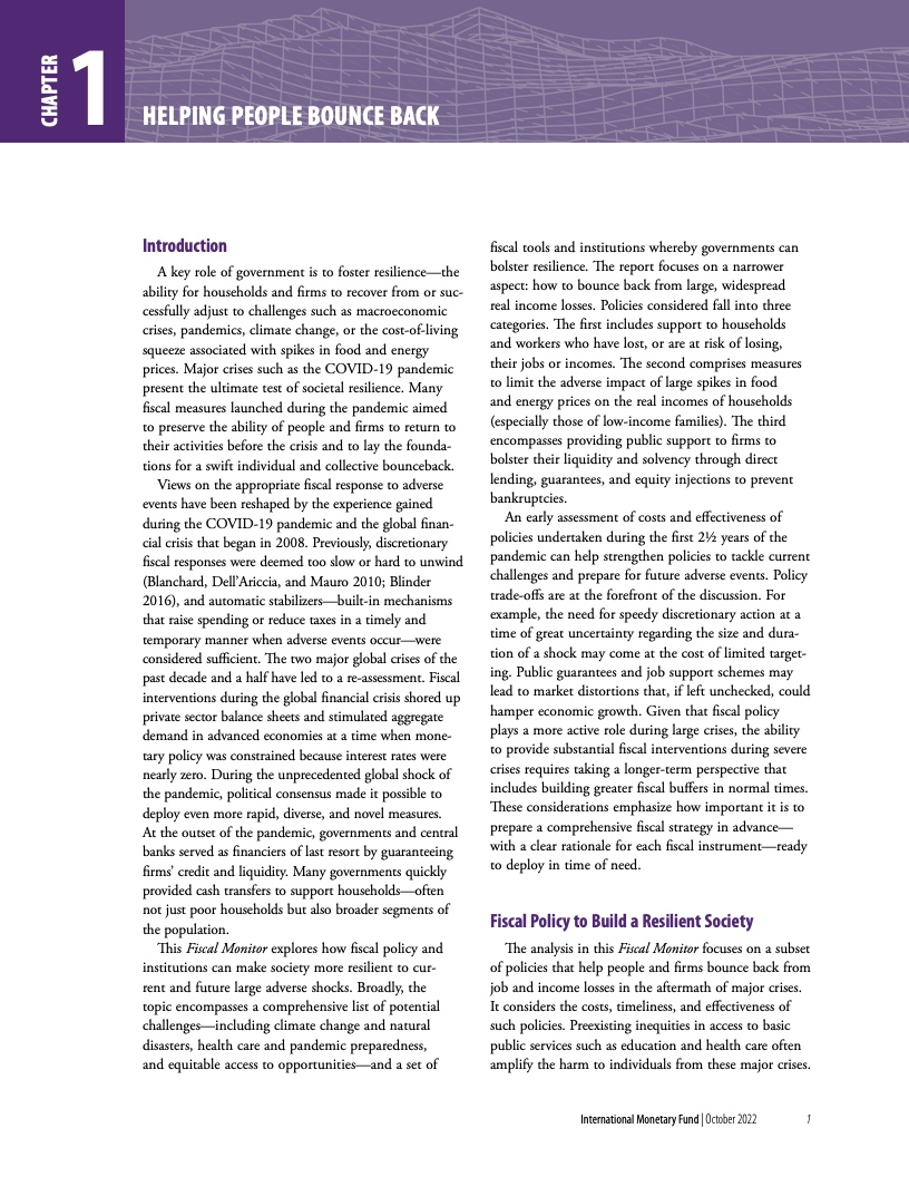 在债务上升和货币政策受限的背景下,我们在过去 15 年的重大全球危机中看到了创新且强有力的财政应对措施。各国应重新思考财政政策在这个易受冲击的时代的作用(即财政政策如何在危机期间更好地缓冲损失和增强韧性),并从世界各地的经验中学习。