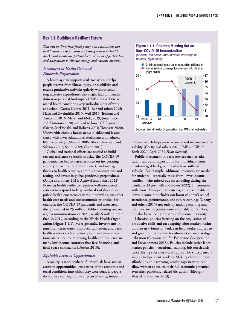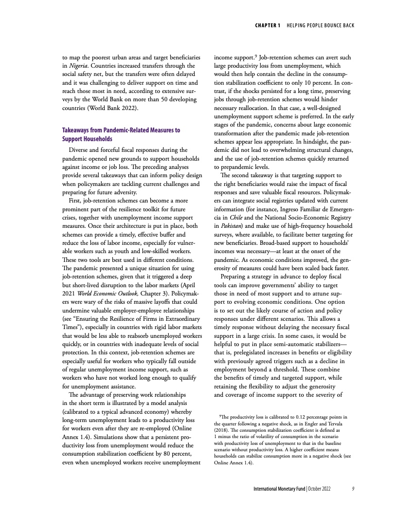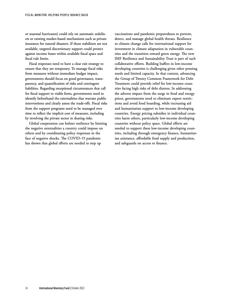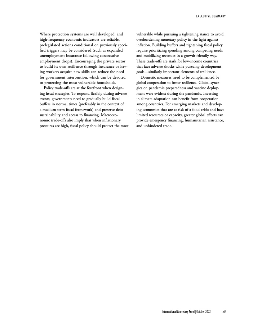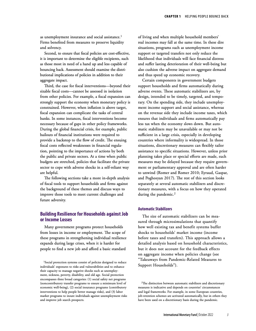 在债务上升和货币政策受限的背景下,我们在过去 15 年的重大全球危机中看到了创新且强有力的财政应对措施。各国应重新思考财政政策在这个易受冲击的时代的作用(即财政政策如何在危机期间更好地缓冲损失和增强韧性),并从世界各地的经验中学习。