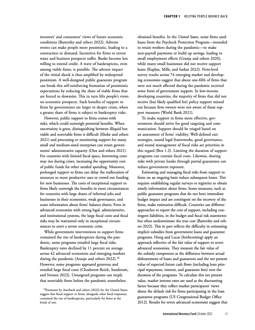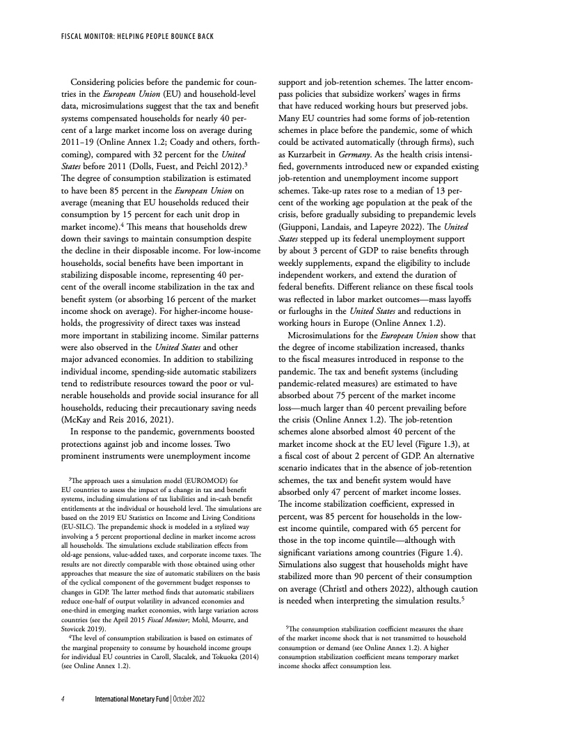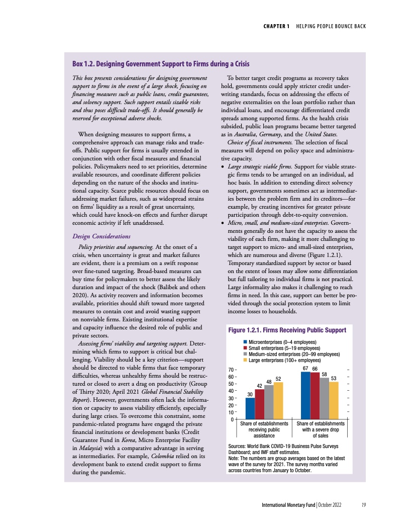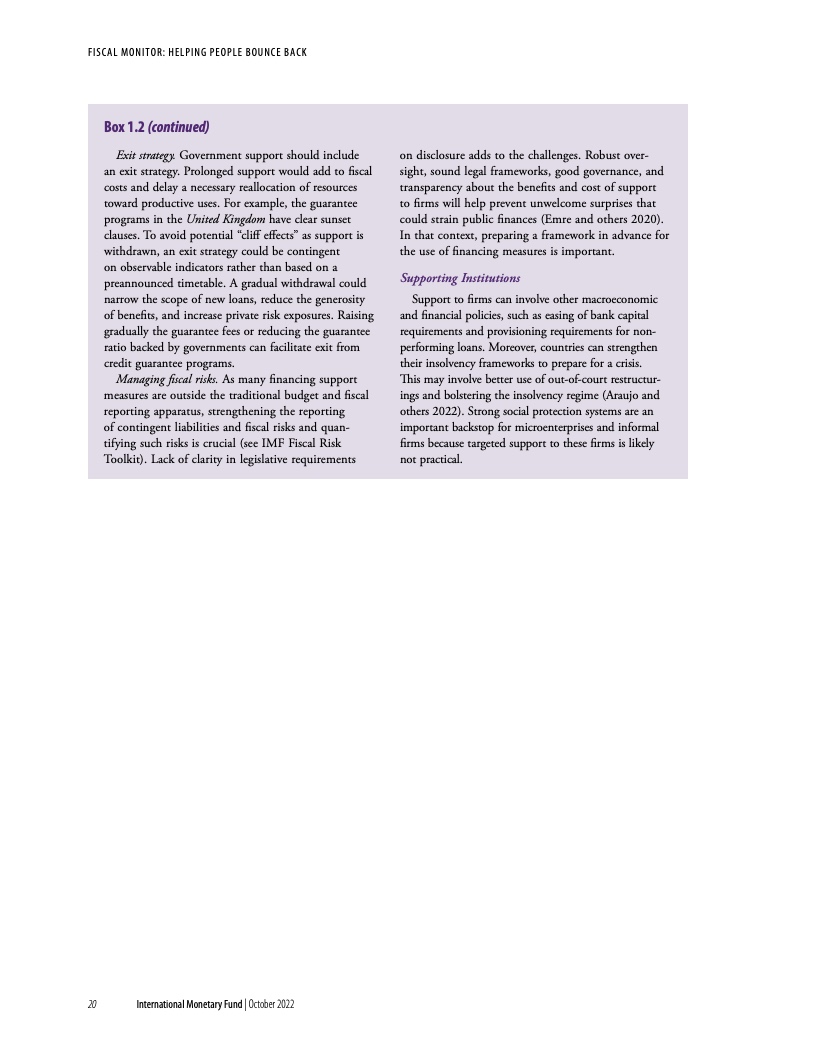参照结合他们自己的能力和可用的财政空间,能够将在 COVID-19 疫情期间证明有效的几种财政工具将永久添加到各国的工具箱中。例如,欧盟的工作保留计划在疫情期间被证明是有效的,能够弥补 40% 以上的个人收入损失。对企业的特殊财政支持能够防止大规模破产。但这种支持政策只应在重大危机环境下选用,因为它使政府面临相当大的财政风险敞口。