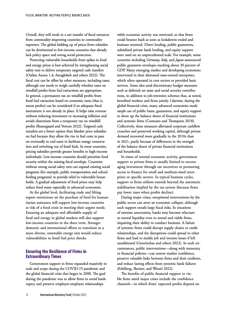 各国应通过有针对性的支持措施优先保障弱势群体,同时保持紧缩的财政政策立场,帮助降低通胀。
