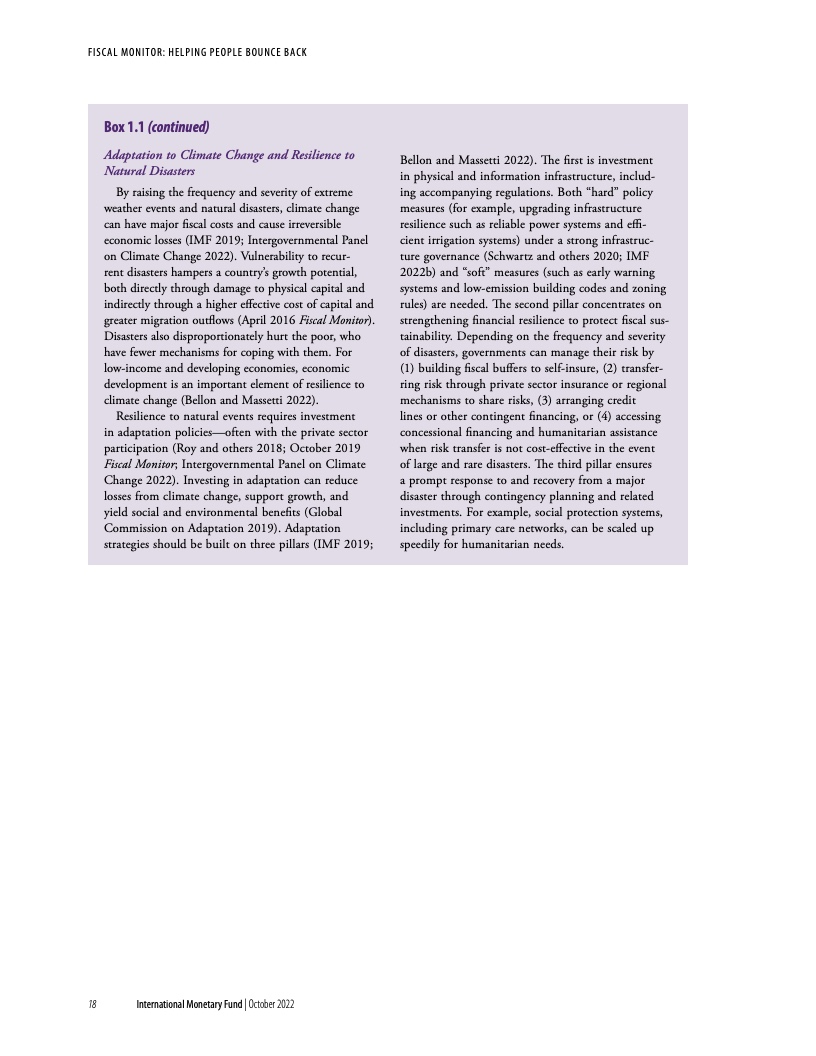 我们的报告强调政府应当需要逐步增强抵御一系列不利冲击的能力。每个国家特有的自然灾害和其他不利事件,再加上 COVID-19 疫情和全球金融危机,都表明政府一定要提前计划。逐步建立财政缓冲最终将使决策者得以快速灵活地应对危机。