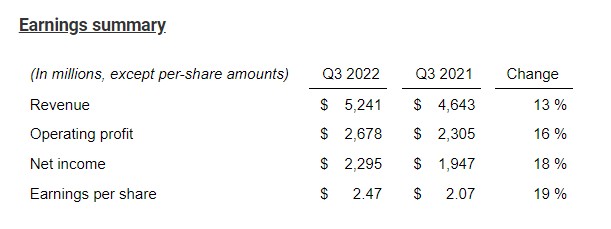 德州仪器公布了其2022财年第三季度财务业绩。财报显示,德州仪器Q3营收为52.41亿美元,同比增长13%,好于分析师预期的51.4亿美元,营收连续七个季度以两位数百分比增长;净利润为22.95亿美元,同比增长18%;摊薄后每股收益为2.47美元,好于分析师预期的2.39美元,上年同期为2.07美元。