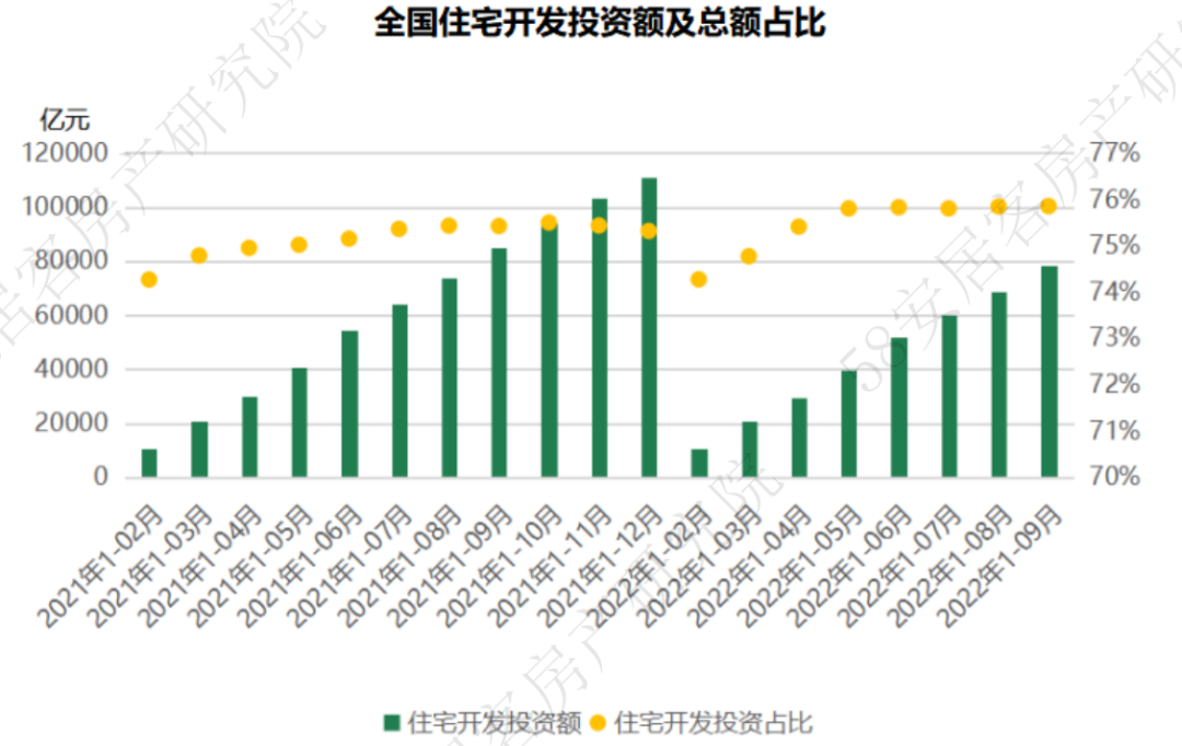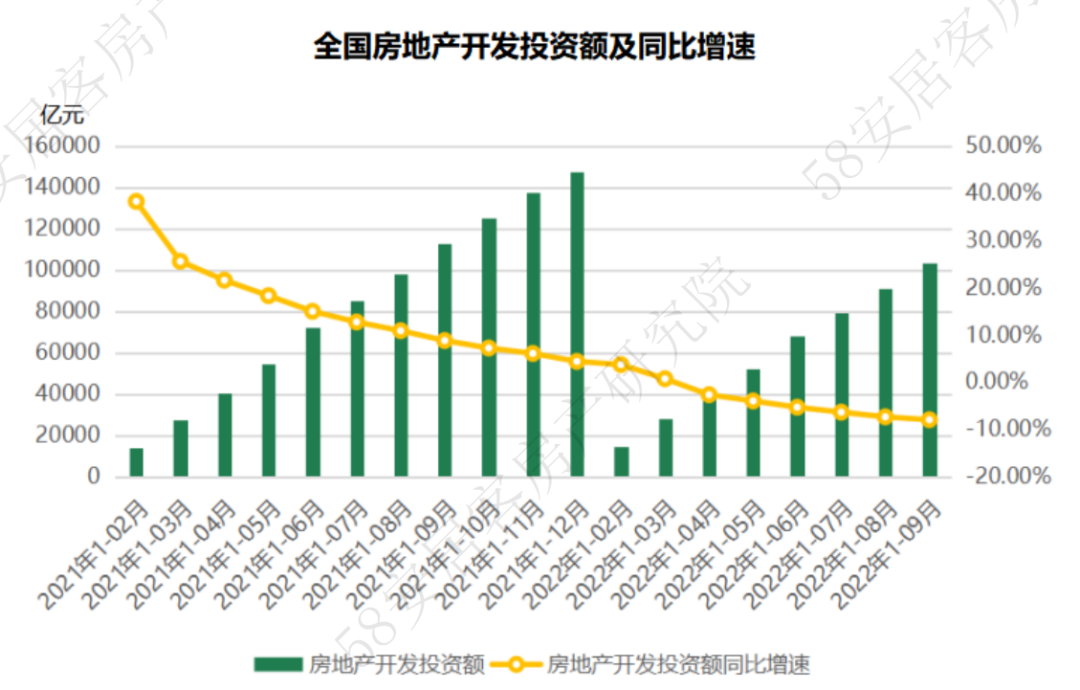 2022年1-9月,全国房地产开发投资额为10.36万亿元,同比降幅继续扩大至8%。