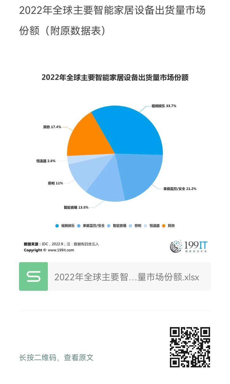 - 2022年全球主要智能家居设备出货量(附原数据表)