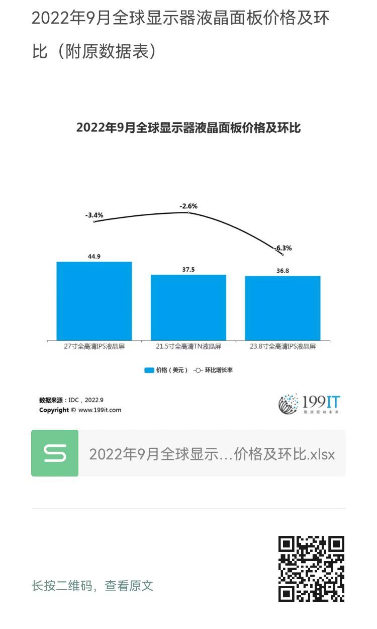 - 2022年12月全球显示器液晶面板价格及环比(附原数据表)
