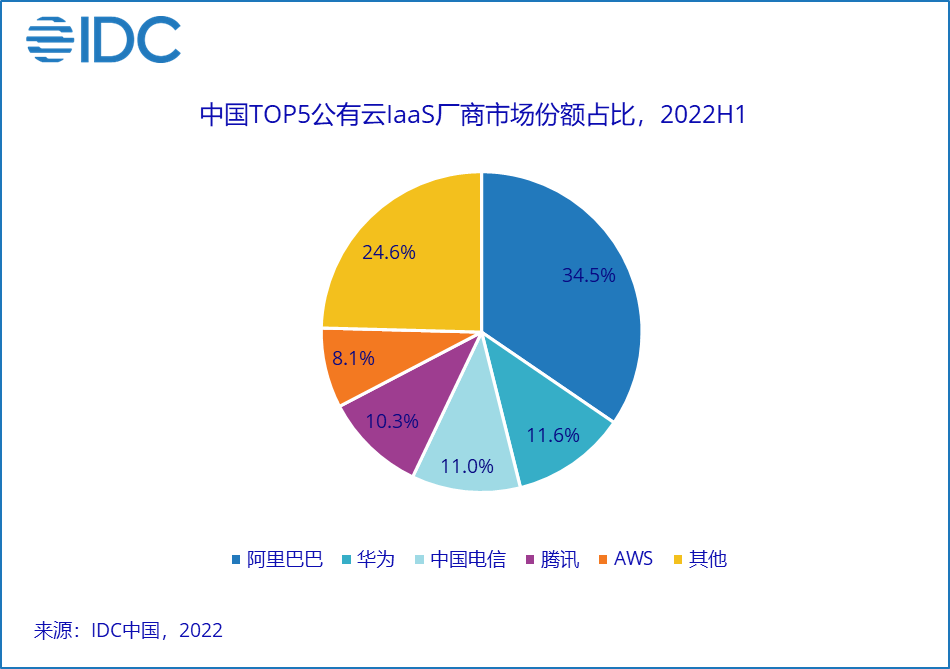国际数据公司 (IDC)最新发布的《中国公有云服务市场(2022上半年)跟踪》报告显示,2022上半年中国公有云服务市场整体规模(IaaS/PaaS/SaaS)达到165.8亿美元,其中IaaS市场同比增长27.3%,PaaS市场同比增速为45.4%。从IaaS+PaaS市场来看,2022上半年同比增长30.7%,与2021上半年增速(48.7%)相比下滑18%。