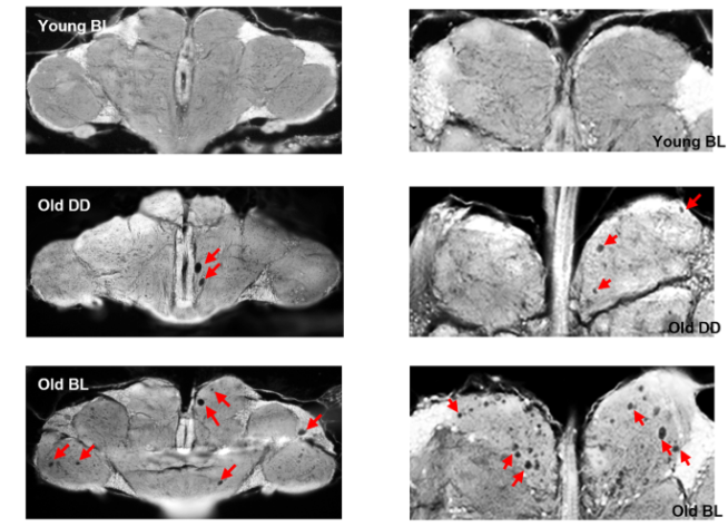 蓝光暴露导致老化苍蝇大脑的神经退化增加(图片来源:npj aging)