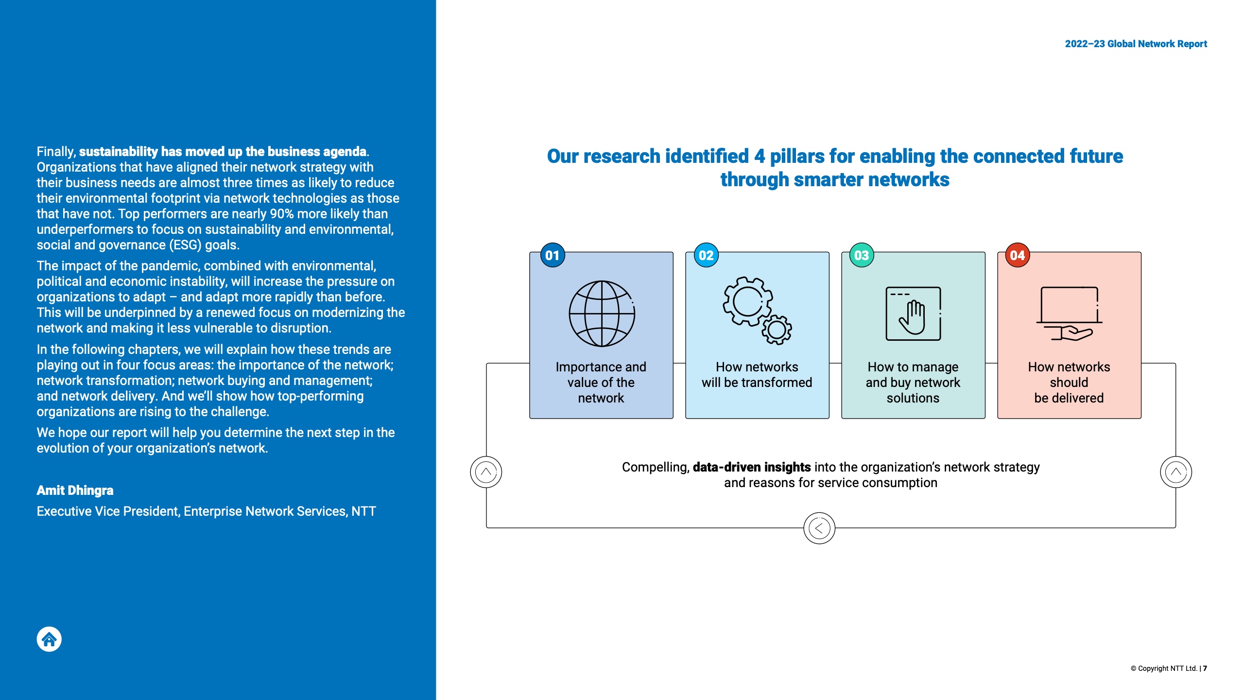 我们正处于网络服务的现代化进程中,目前只适用于少数企业的解决方案将在短短两年内成为标准。企业应将注意力转向 NaaS 模式。企业在选择网络服务供应商时,应综合考虑安全性、技术能力、扩展能力及软件定义网络技术。从长远来看,区块链、进一步的人工智能和自动化、AR 增强现实和 VR 虚拟现实、量子网络、6G 和光子计算将影响未来网络的交付方式。