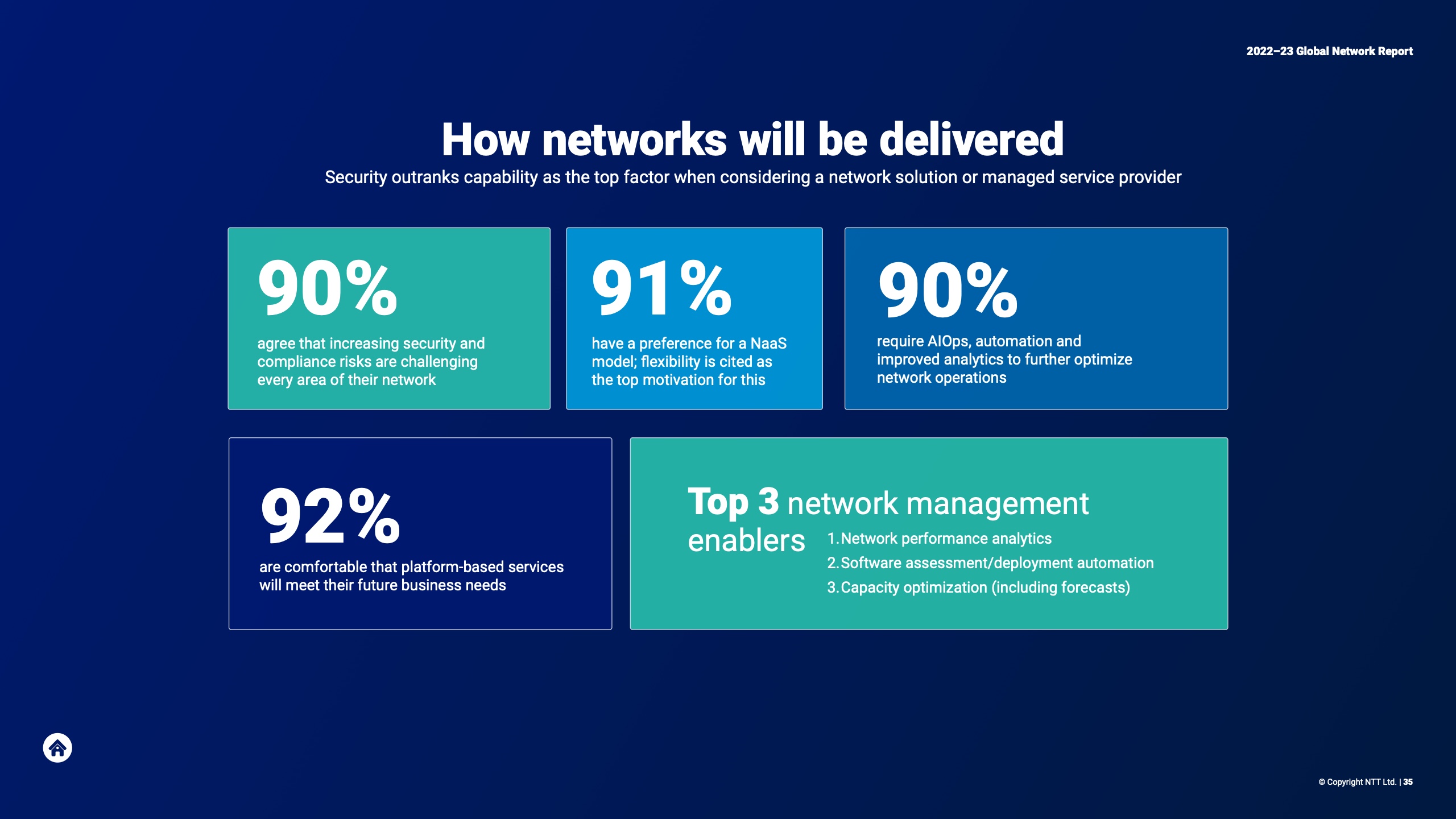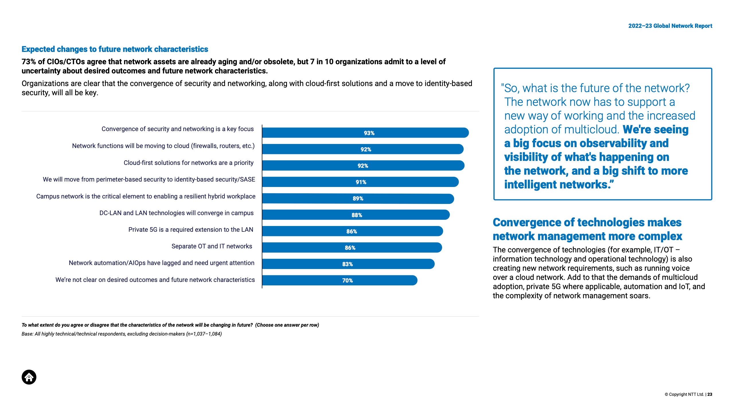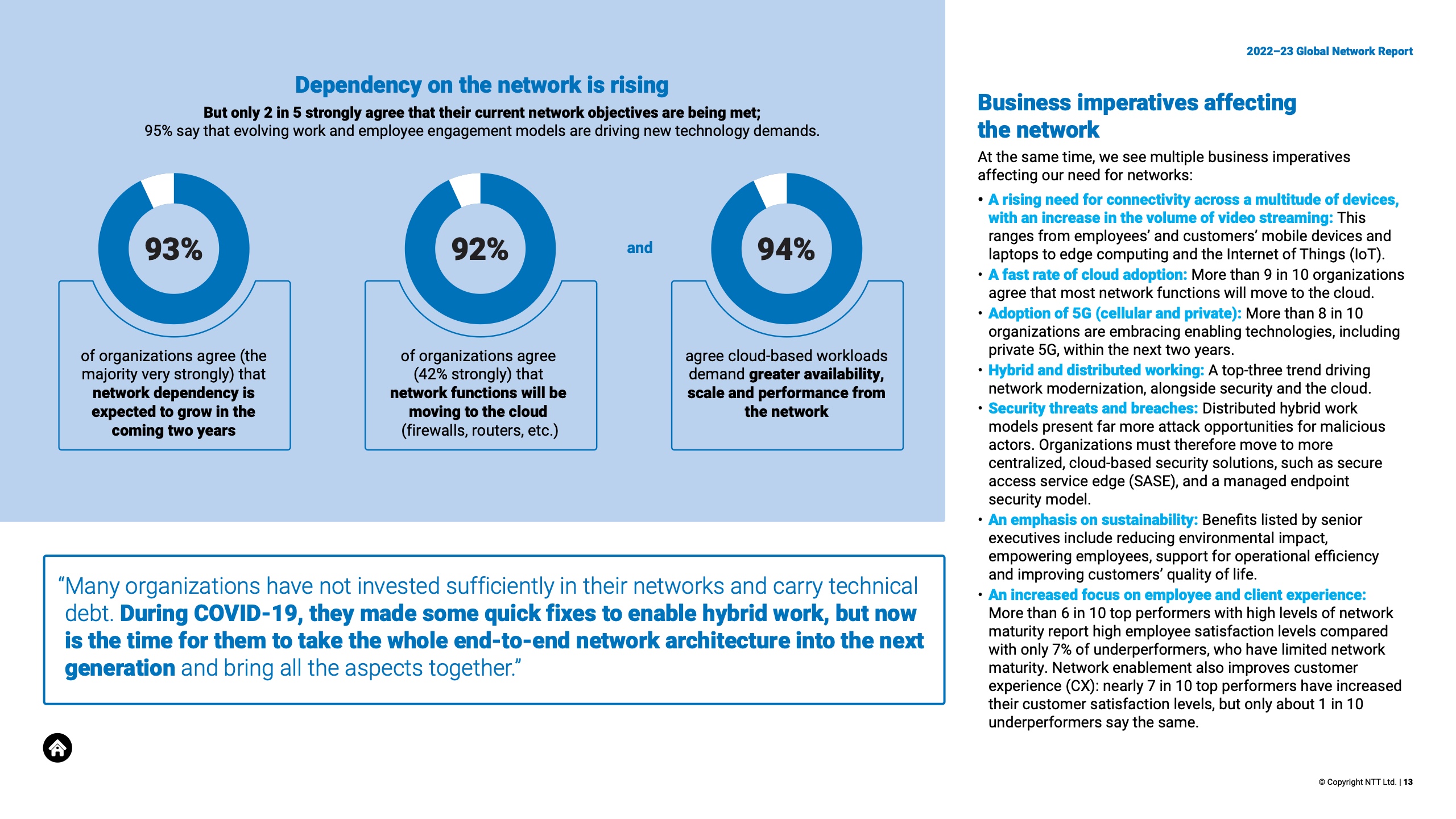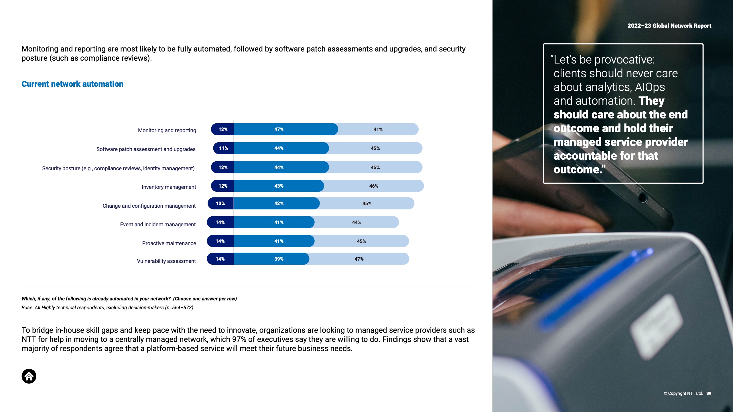 - 70% 的高管,表示当前的网络成熟度对其公司业务交付产生了负面影响;