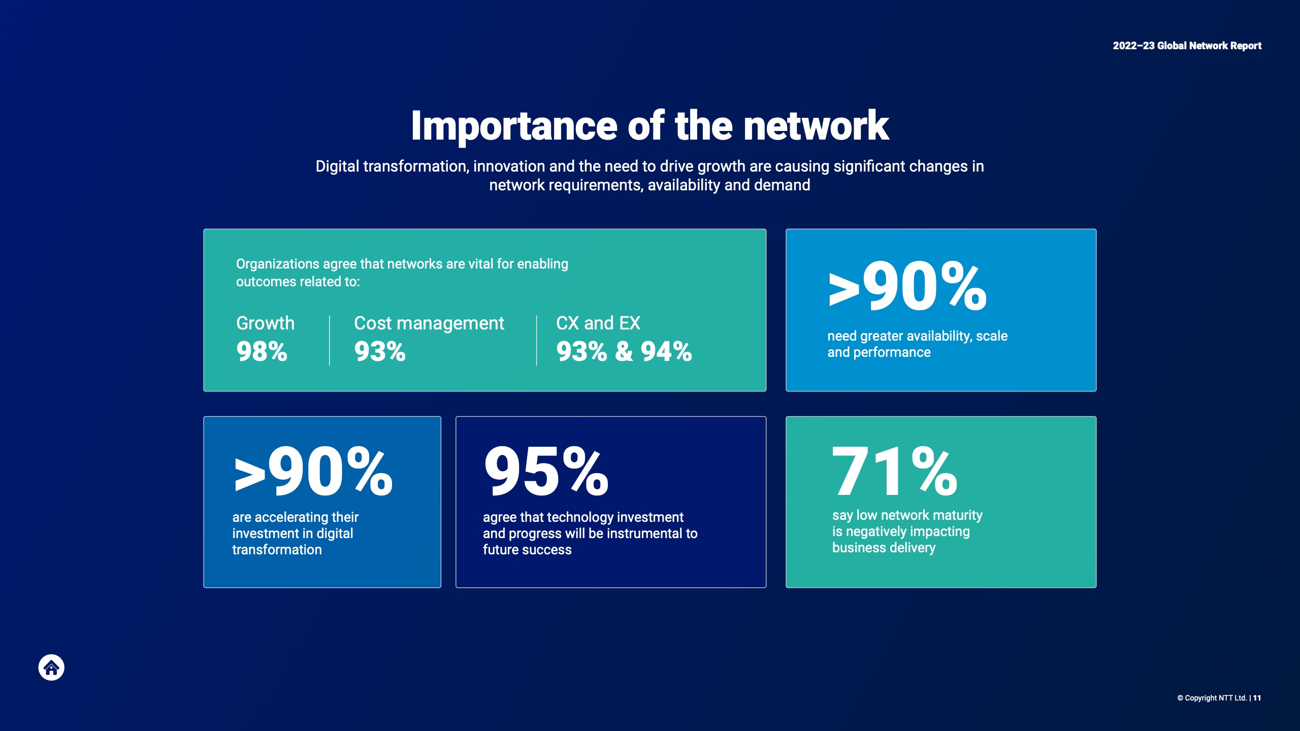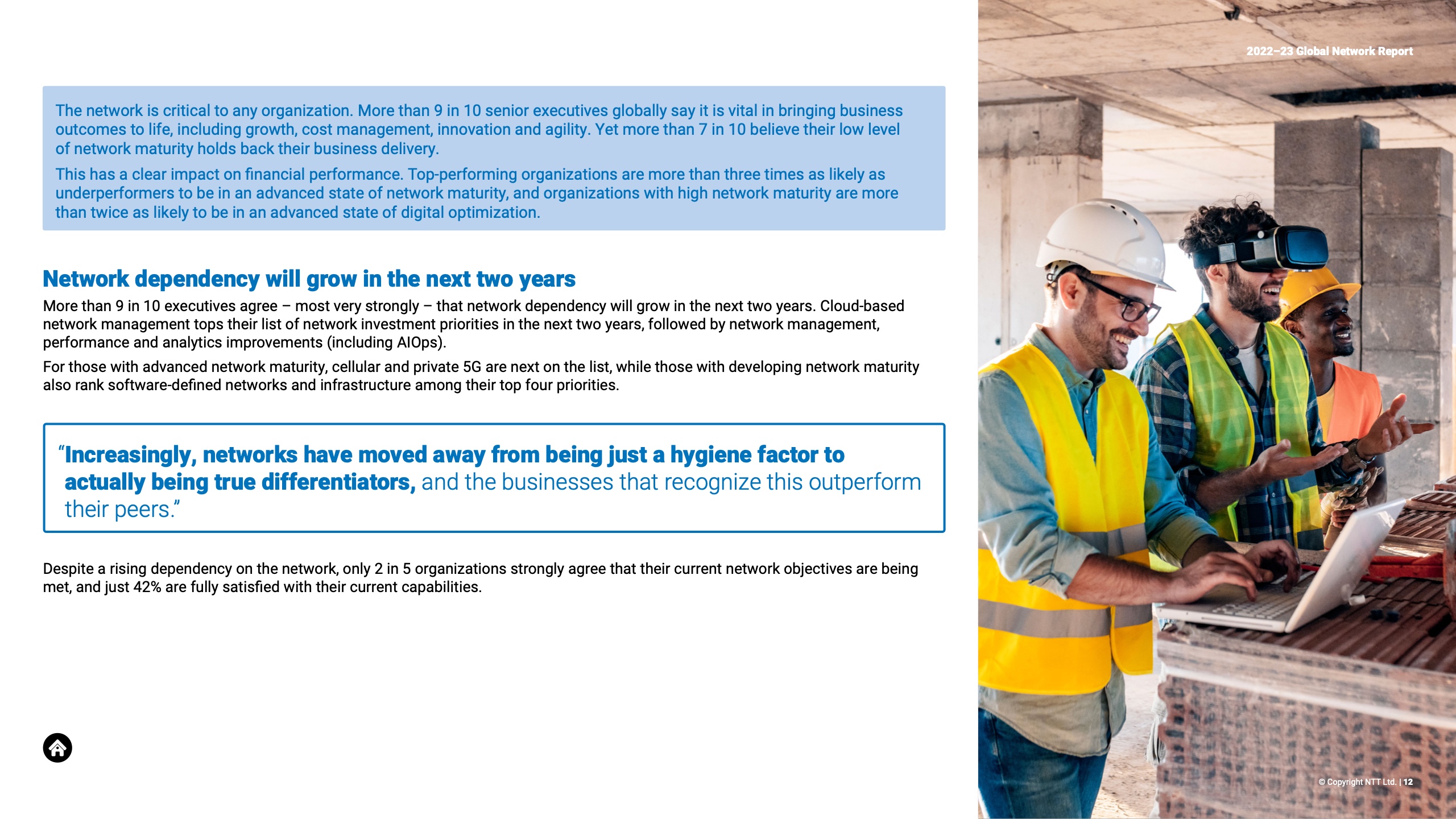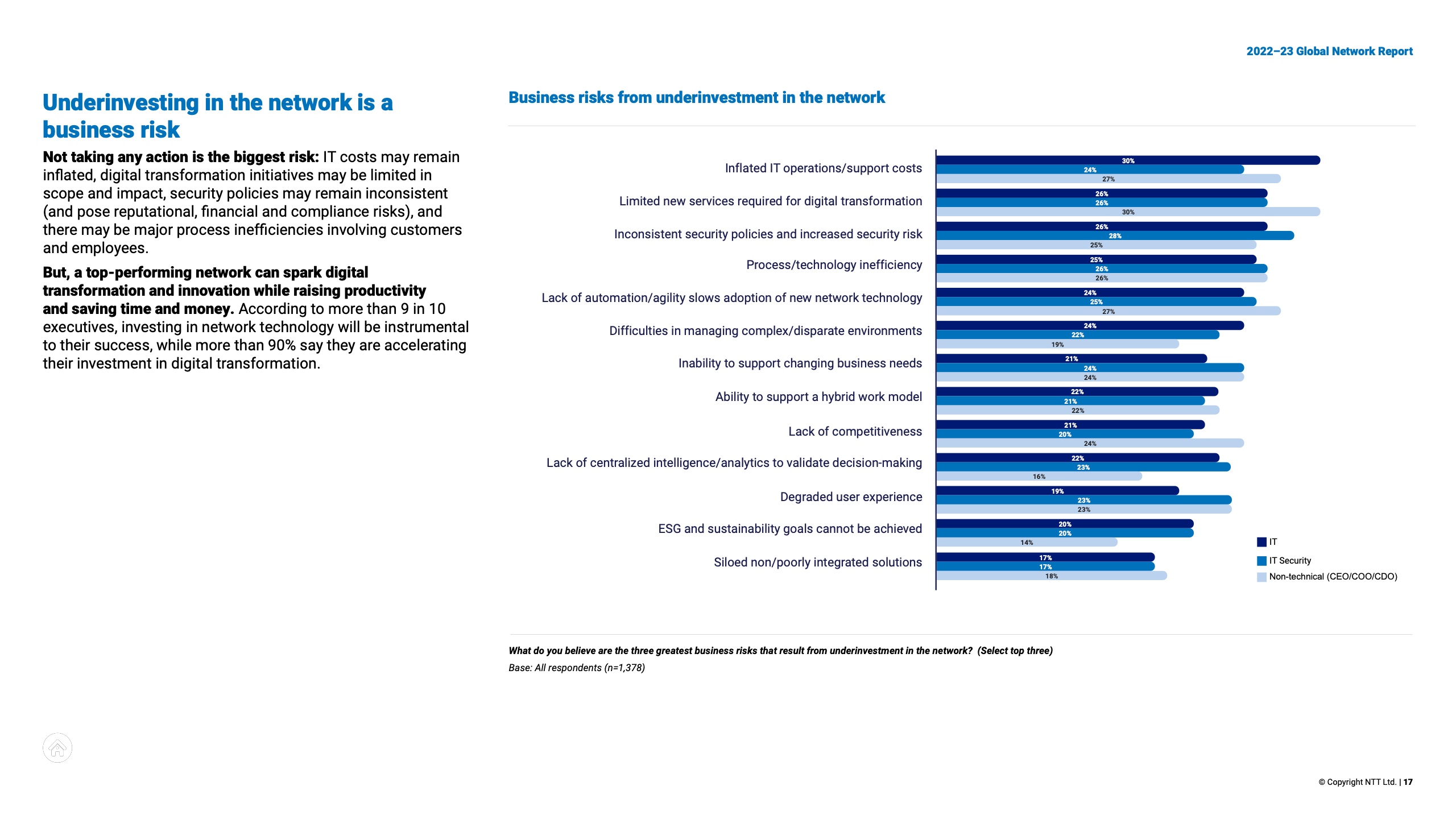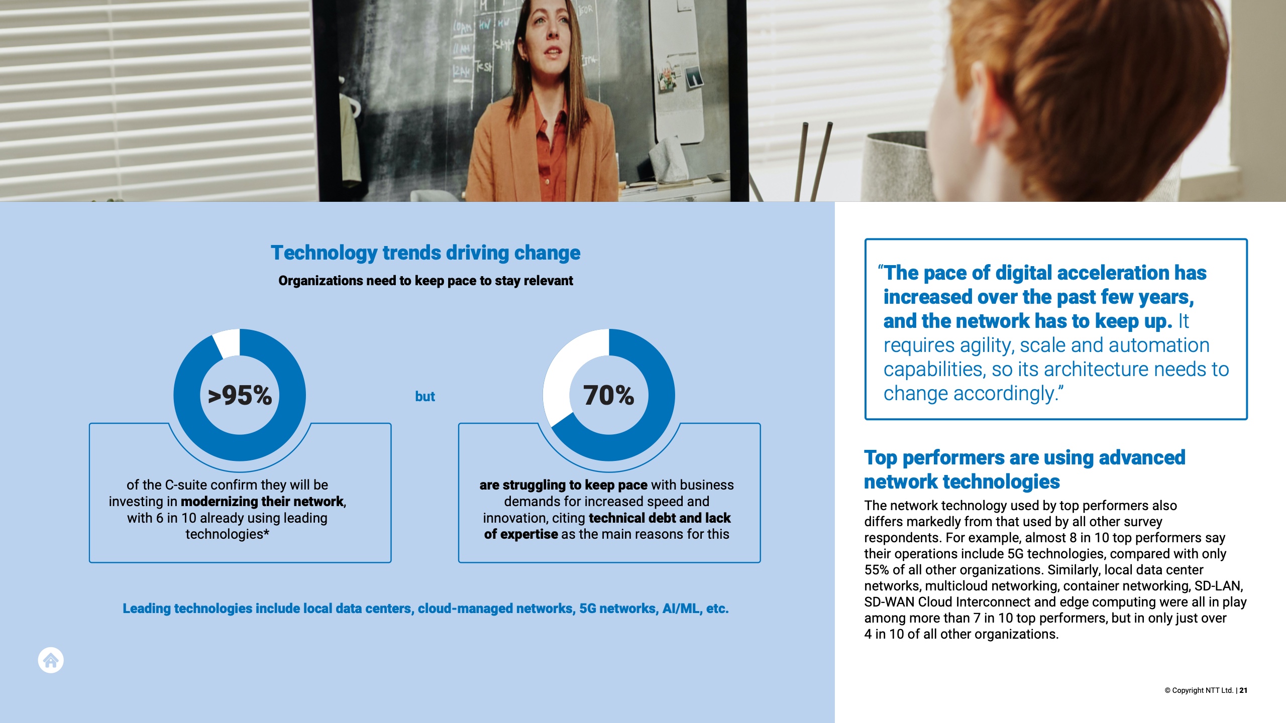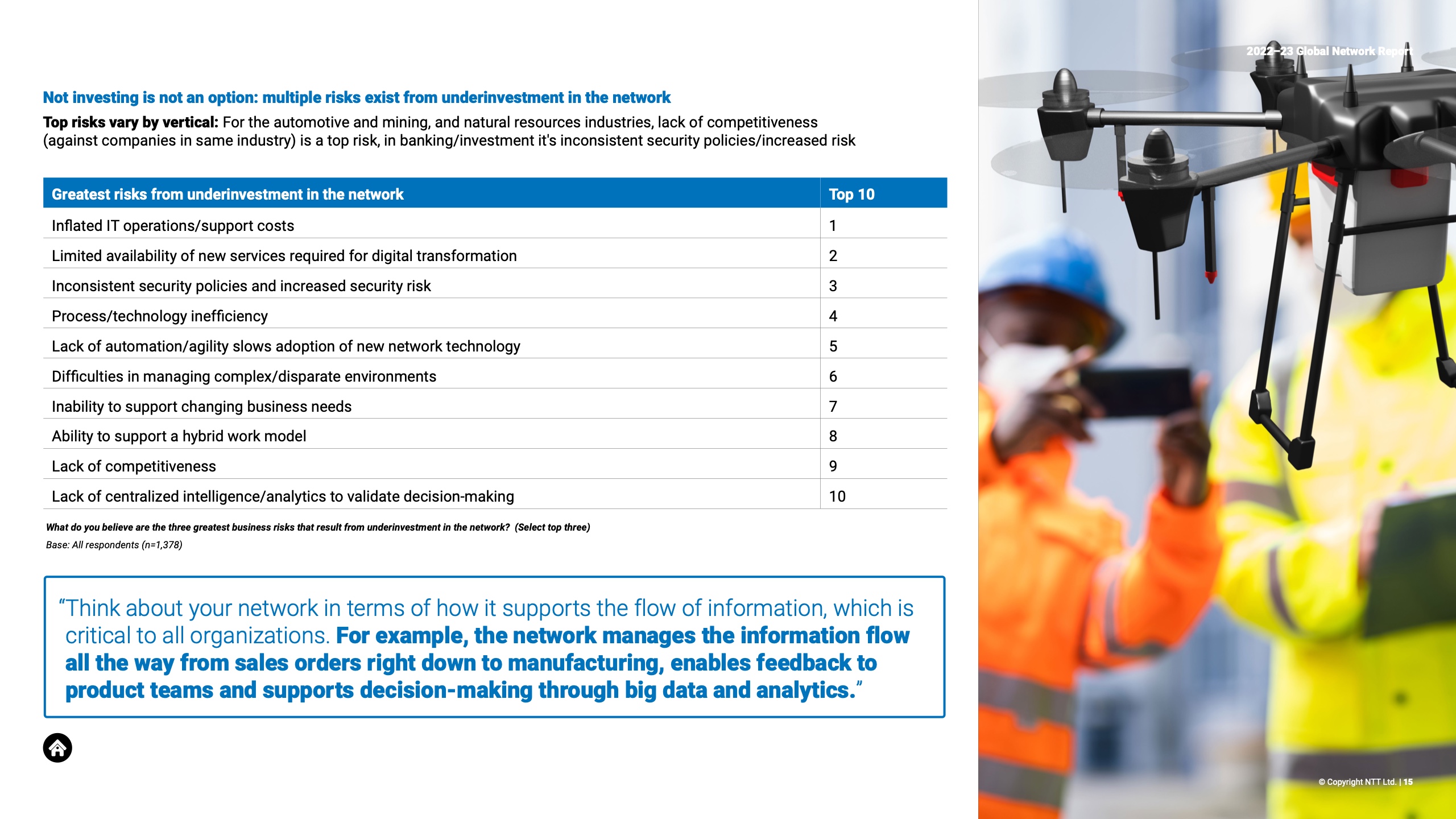 - 70% 的高管,表示当前的网络成熟度对其公司业务交付产生了负面影响;