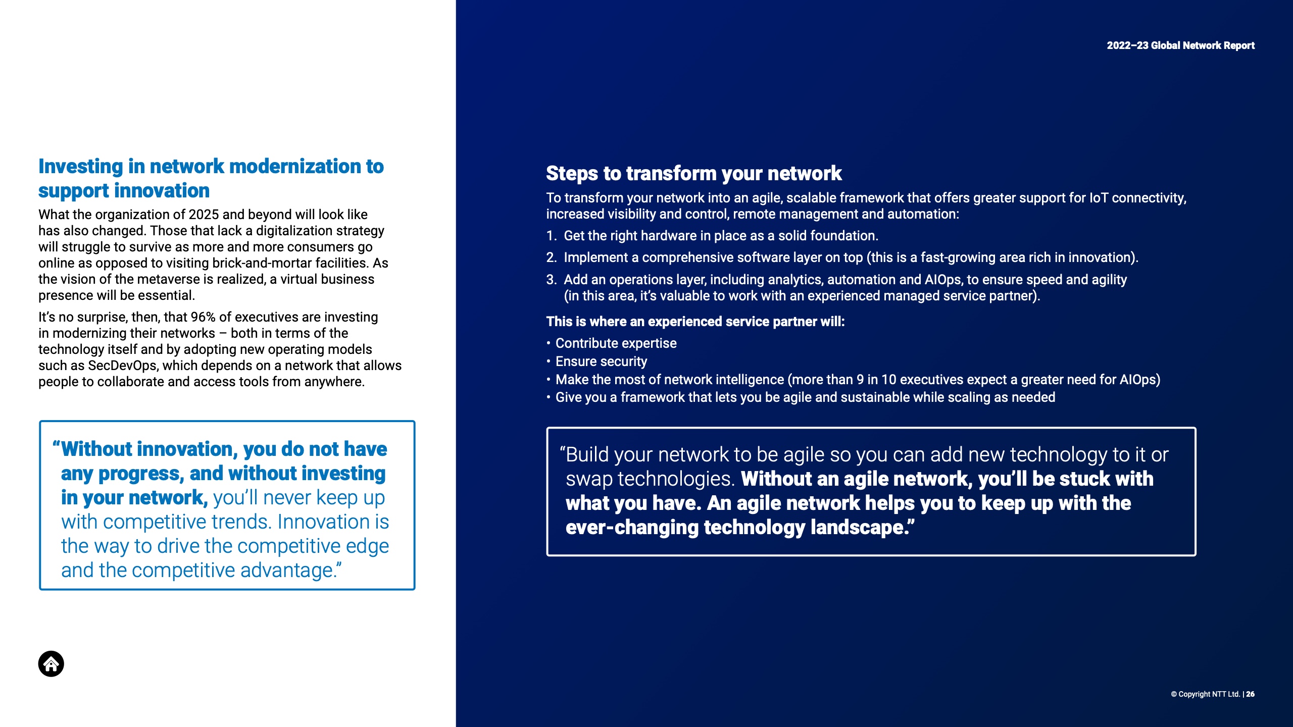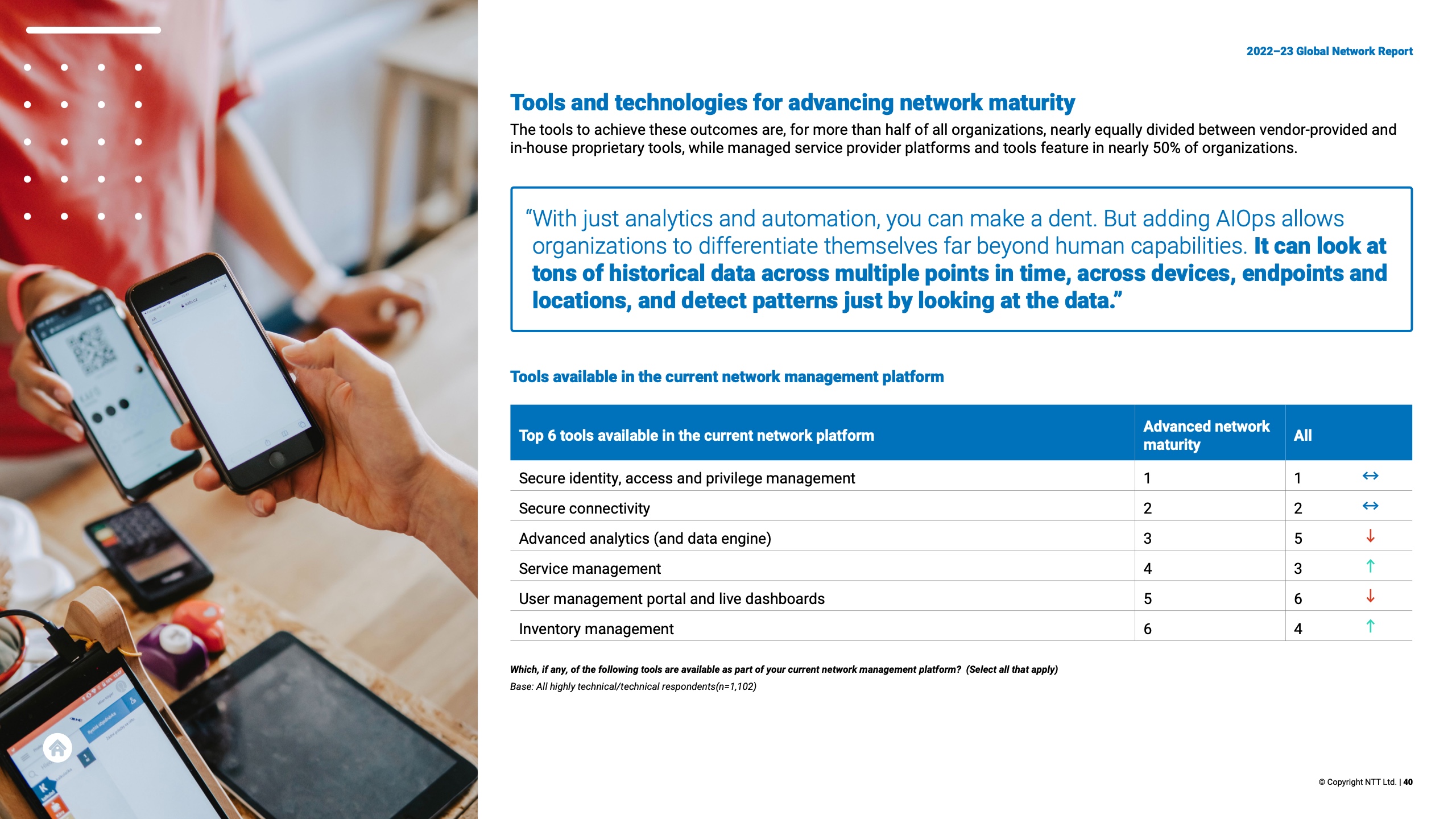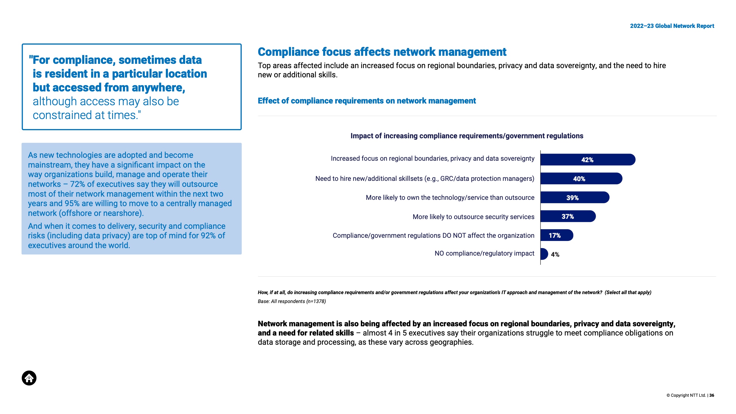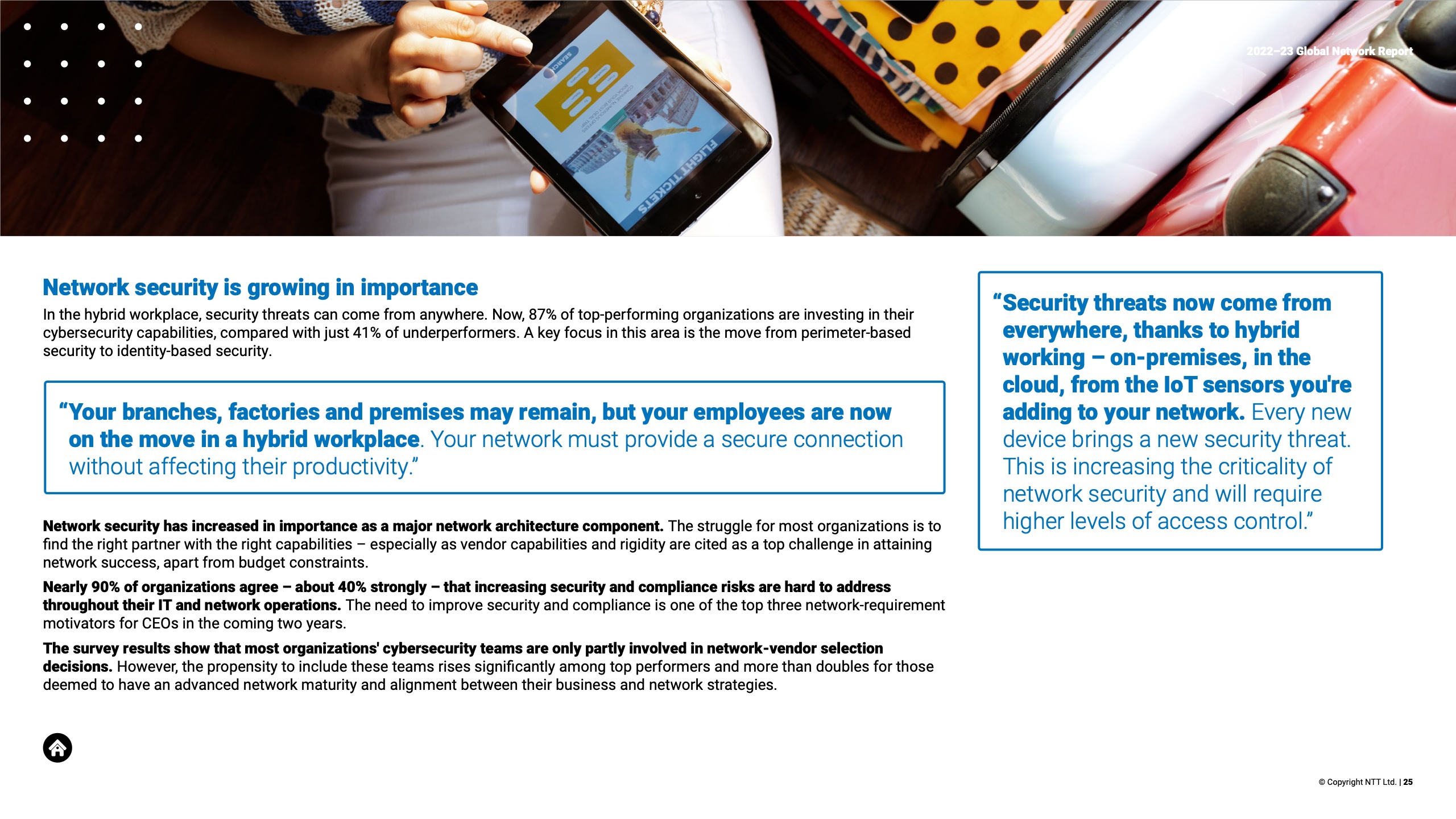 - 70% 的高管,表示当前的网络成熟度对其公司业务交付产生了负面影响;
